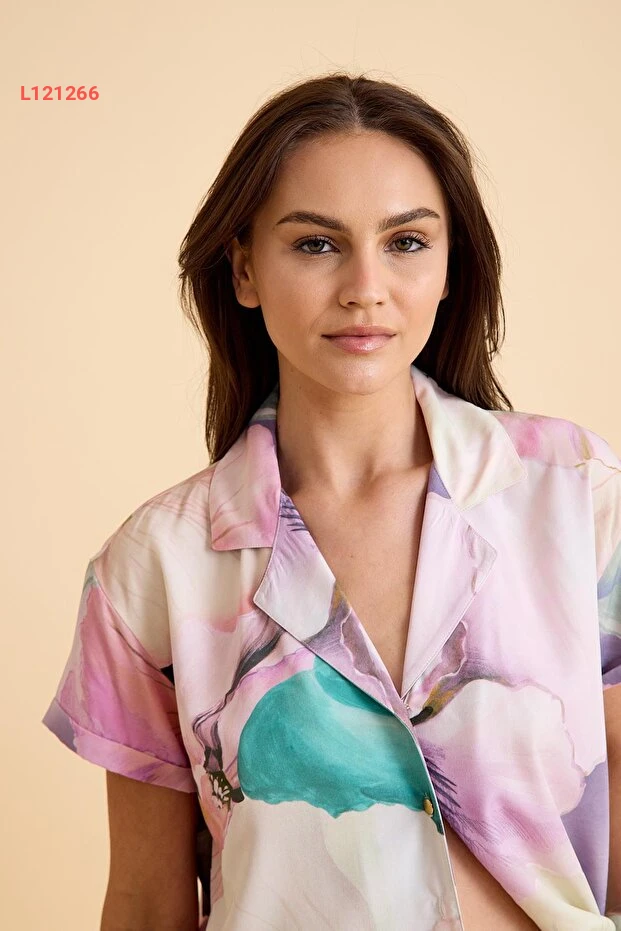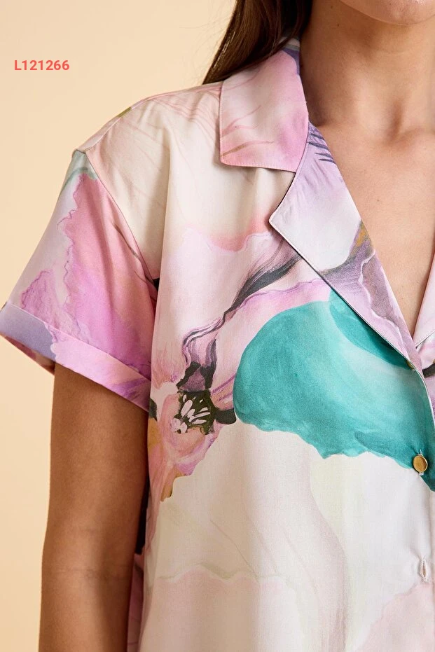 استمتع بليالي مريحة مع طقم بيجاما أماريل براديس، المصنوع من قماش الفيسكون الناعم والمريح. يتميز بتصميمه الأنيق المزخرف بالزهور وأزراره العصرية، مما يجعله الخيار المثالي للراحة والأناقة في المنزل. أضف لمسة من الفخامة لأوقاتك الاسترخائية مع هذا الطقم الذي يجمع بين الجمال والراحة.
