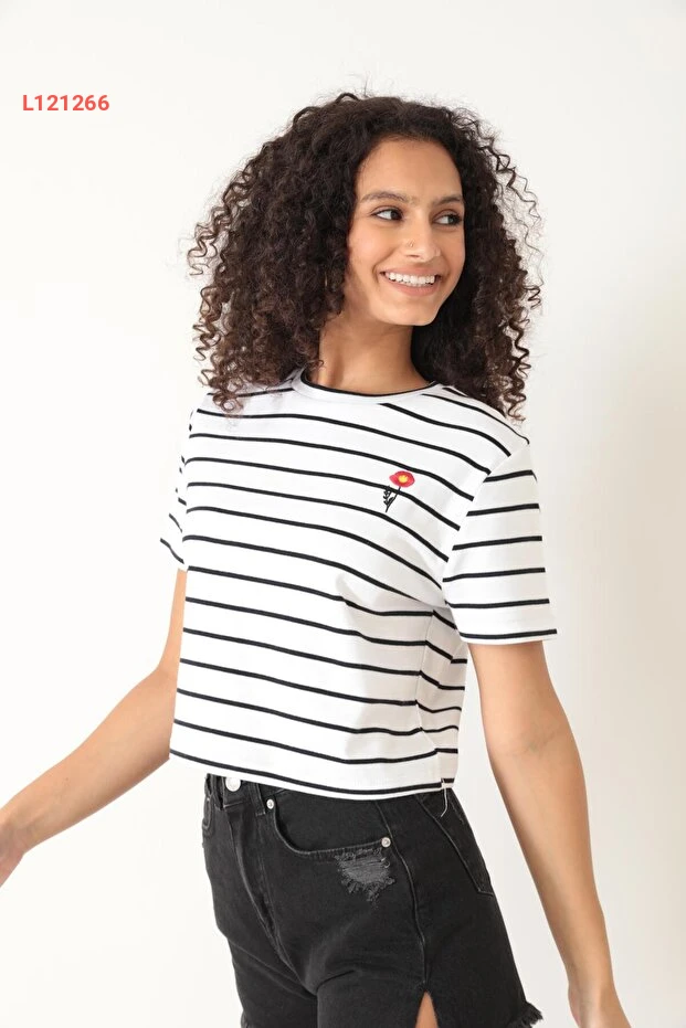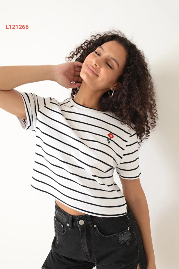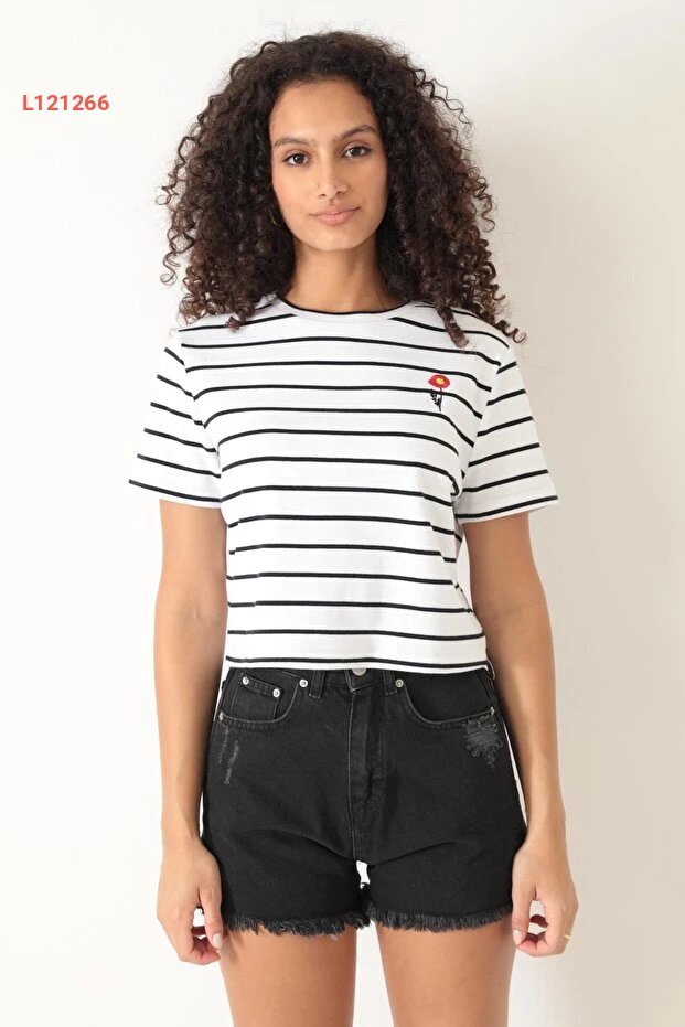 استمتعي بالأناقة والراحة مع تي شيرت AMİDA ذو الأكمام القصيرة، المصنوع من قماش ناعم ومريح. يتميز بتصميمه المخطط الأنيق وتفاصيل تطريز الخشخاش الأبيض، مما يضيف لمسة عصرية إلى إطلالتك اليومية. اجعليها خيارك المثالي للتنقل بين الأوقات الرسمية وغير الرسمية بأناقة لا مثيل لها.