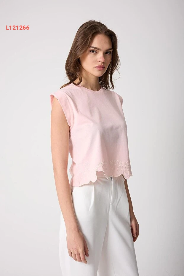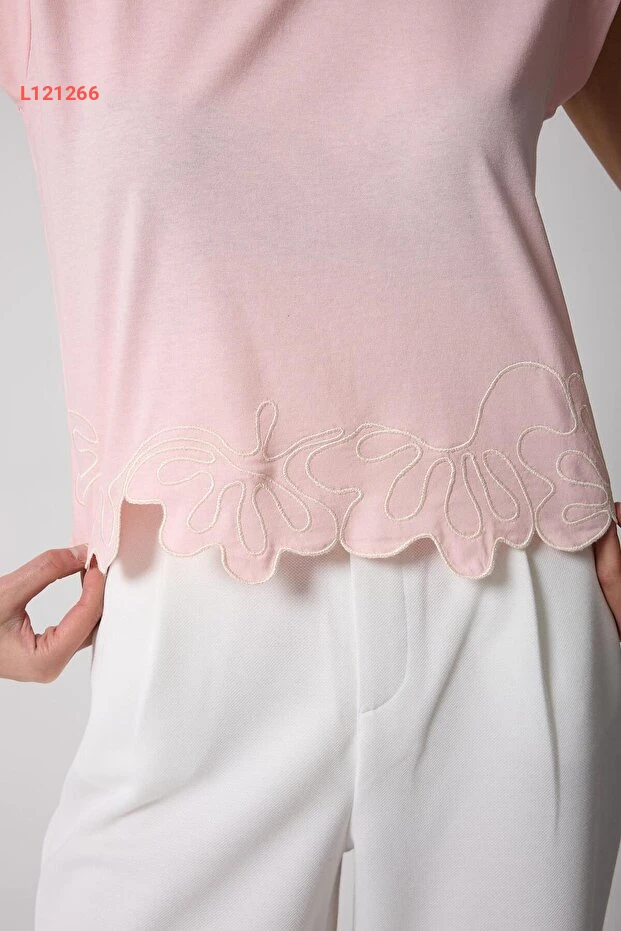 استمتعي بإطلالة عصرية ومريحة مع تي شرت AMİDA بلون وردي باهت، الذي يتميز بتصميمه الأنيق المدعوم بتفاصيل رائعة من التطريز وقص الليزر المتقن. يجمع هذا التي شرت بين الأناقة والراحة، مما يجعله خيارًا مثاليًا لإطلالاتك اليومية أو لمناسبات خاصة. ارتدي هذا التصميم الفريد وأبرزي أنوثتك بثقة وجاذبية.