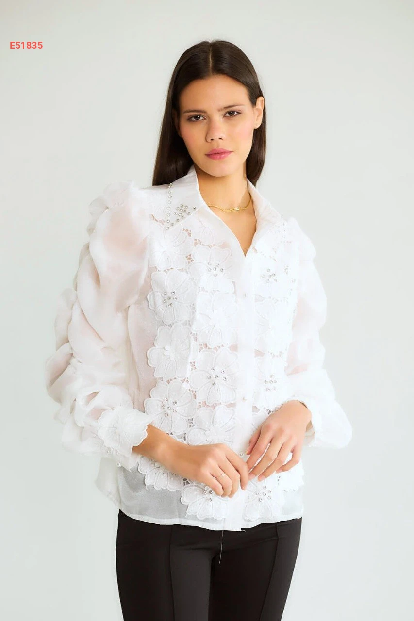قميص مكلف جيبير بأكمام مجمعة وأحجار