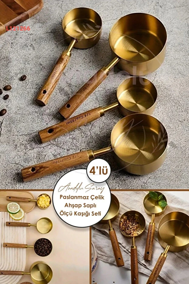 مجموعة ملاعق قياس كبيرة من الفولاذ المقاوم للصدأ مع مقHandles خشبية - 4 قطع
