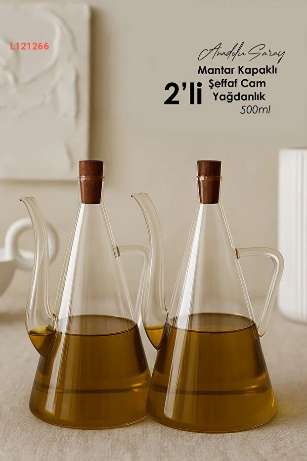 استمتع بأناقة الطهي مع زجاجة الزيت والخل أنادولو سراي الثنائية بسعة 500 مل، المصنوعة من زجاج البوروسيليكات الشفاف الذي يجمع بين المتانة والجمال. تتميز بغطاء مريح من الفلين، مما يضمن حفظ الزيوت والنكهات طازجة، بينما التصميم العصري يضيف لمسة فنية لمطبخك. مثالية لتقديم زيت الزيتون أو الخل بطريقة أنيقة وصحية!