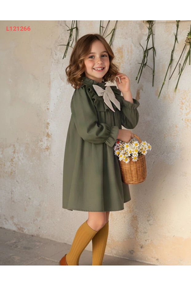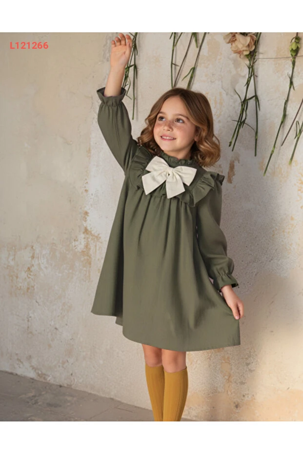 فستان أطفال أنيق مع طوق مزين بالأقواس - تصميم رائع للاستخدام اليومي والمدرسة والمناسبات الخاصة