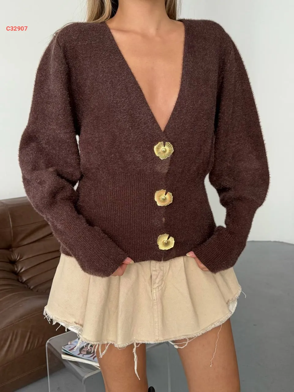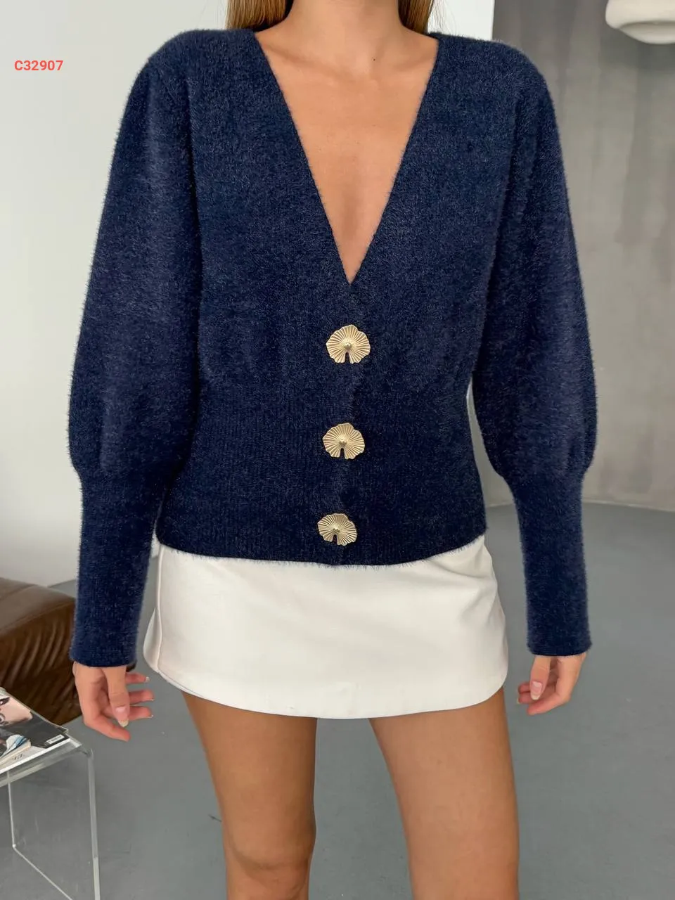 جاكيت أنغورا بأزرار دهبي