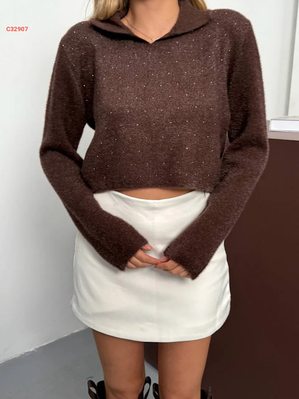 كنزة أنغورا بتفاصيل حجرية