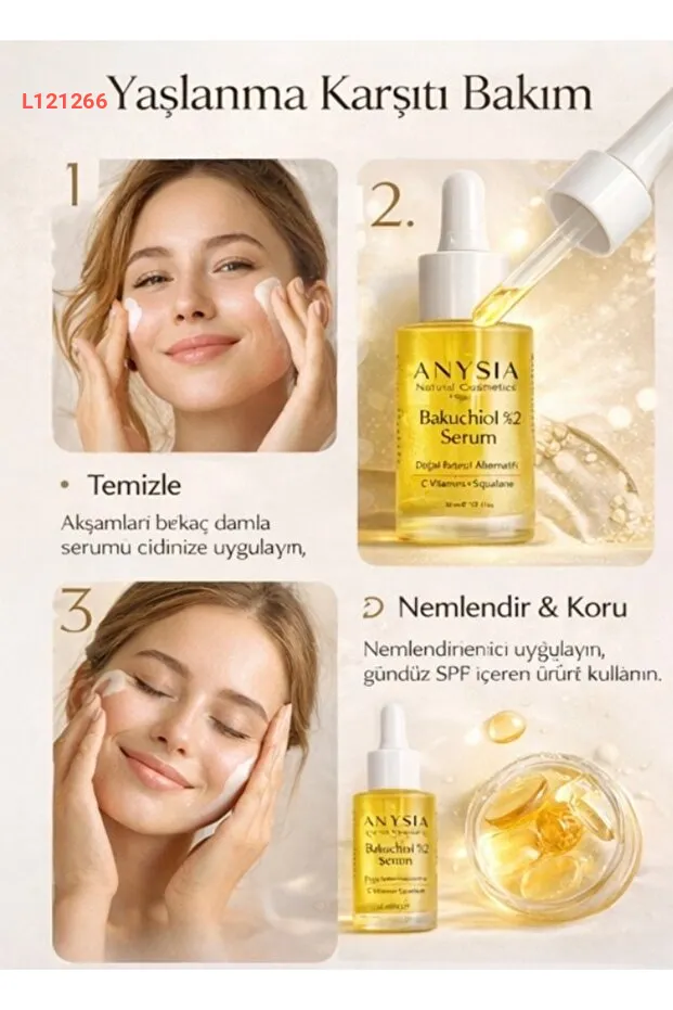 اكتشف سر جمال بشرتك مع سيروم ANYSİA NATURAL بتركيز 2% من الباكوشيول، المكون الطبيعي الأكثر فعالية لمكافحة علامات الشيخوخة. هذا السيروم الفاخر يعمل على تعزيز مرونة البشرة وتوحيد لونها، مما يمنحك إشراقة صحية وشبابية دون أي آثار جانبية. احصلي على بشرة نضرة وناعمة مع كل استخدام!
