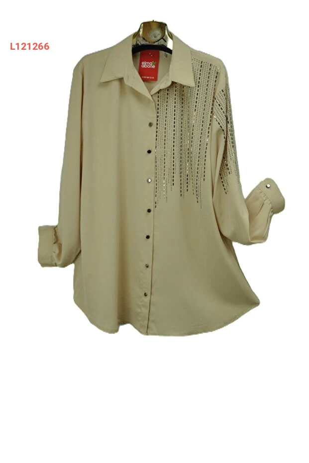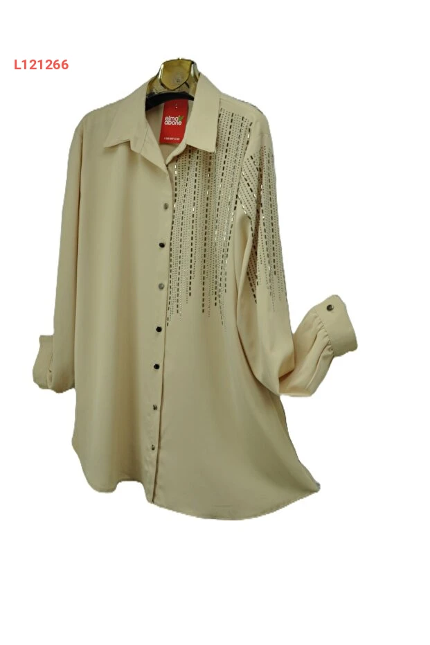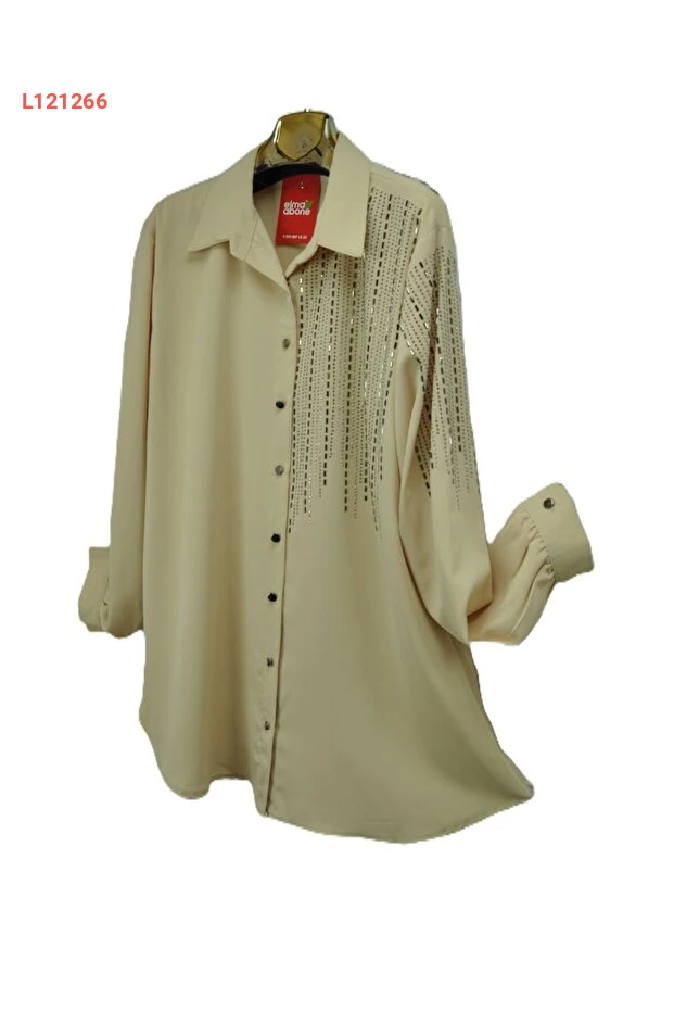 استمتع بالأناقة والراحة مع قميص Elma Abone ذو التصميم العصري والمناسب للسيدات ذوات المقاسات الكبيرة. مزين بأحجار لامعة تضفي لمسة من الفخامة، يمنحك هذا القميص إطلالة رائعة تناسب كل المناسبات. اجعلي كل يوم فرصة لتتألقي!