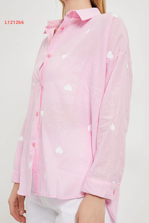 قمصان صيفية وردية طويلة الأكمام بنمط قلب للنساء من أرملايف