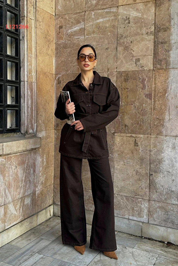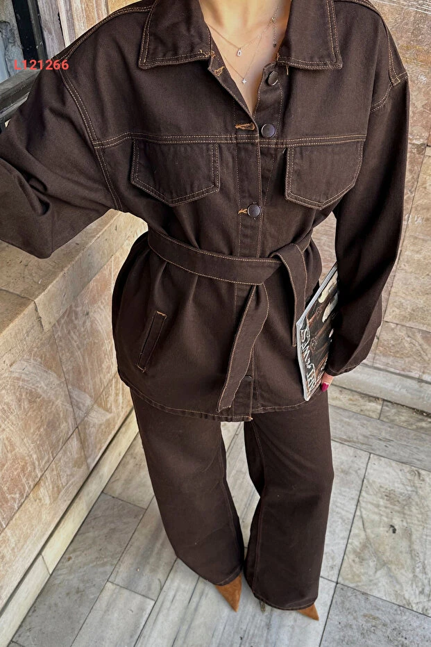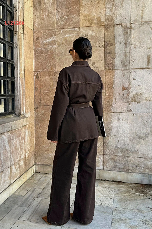طقم جينز ديميم أزرق مع جاكيت وحزام من ASEDE