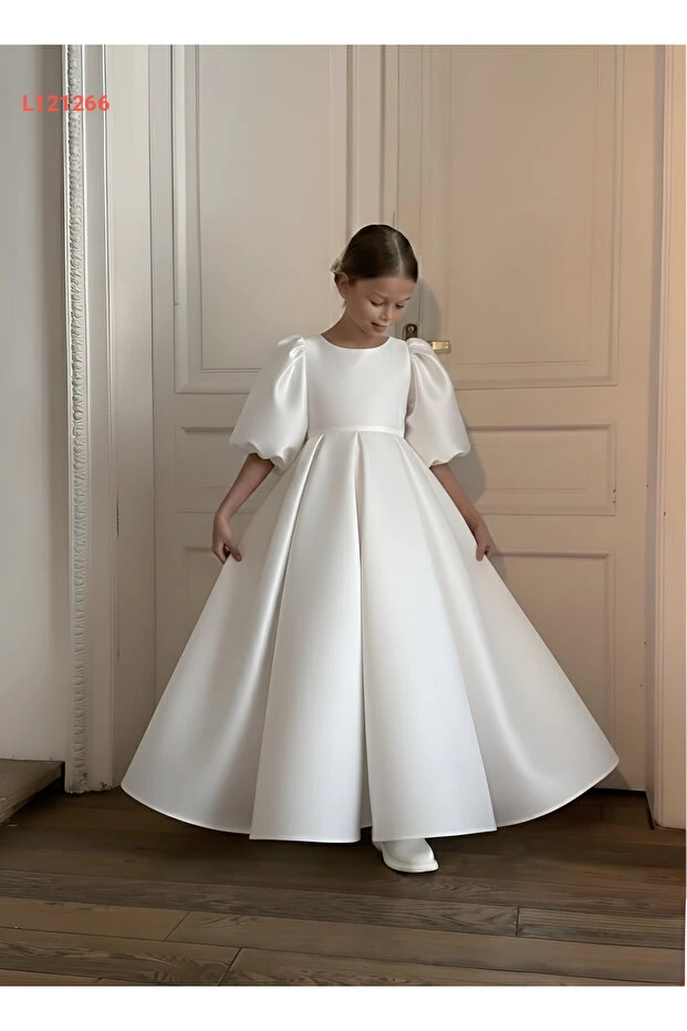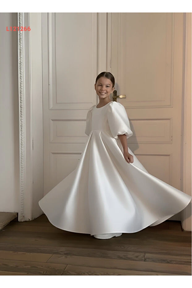 فستان بالون طويل للأطفال مع أكمام مغلقة وزيّ مزين بتفاصيل جميلة