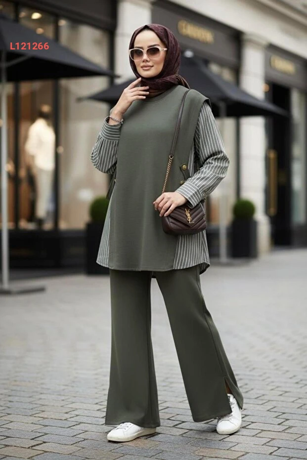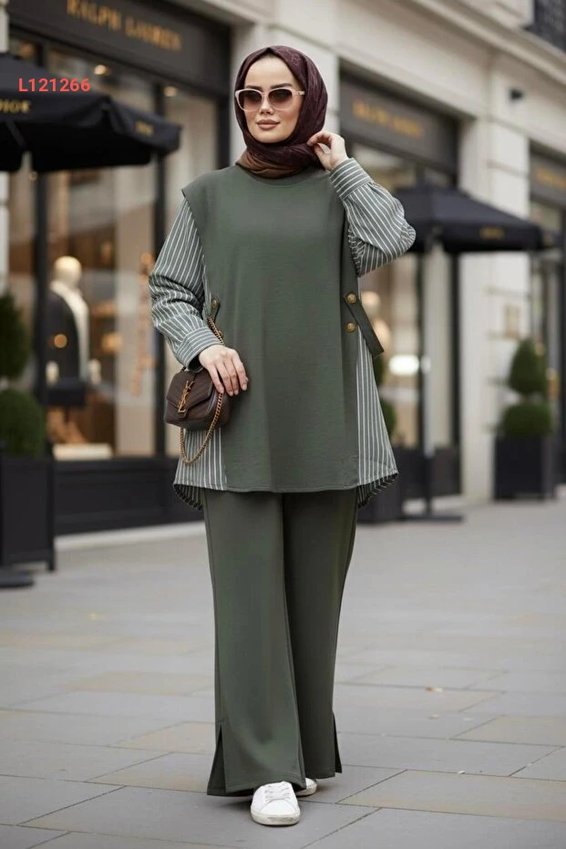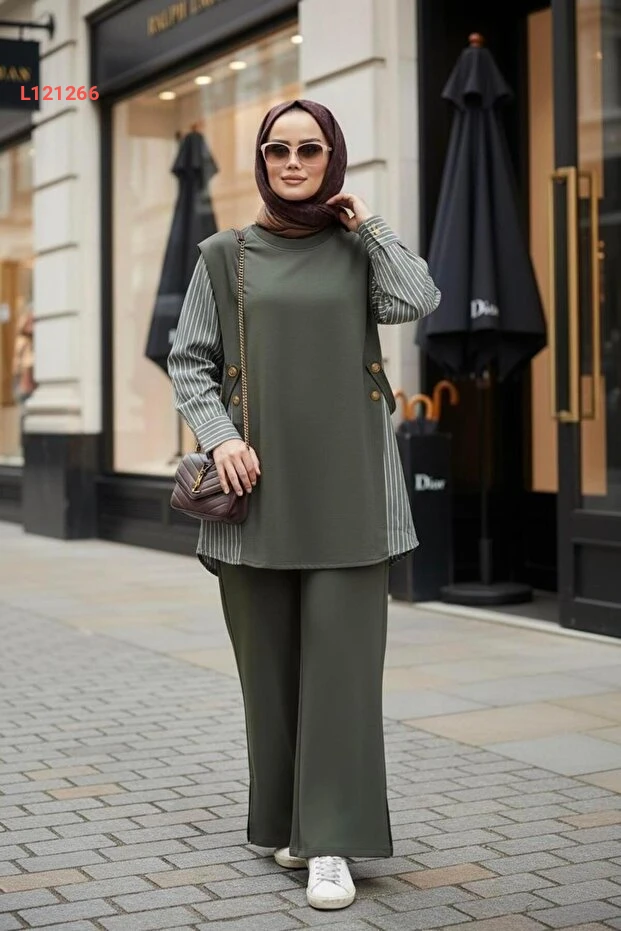 استمتعي بالأناقة والراحة مع طقم أسليم حجاب مودا لورا للسيدات! يتميز بتصميمه العصري ولونه الهاكي الهادئ، بالإضافة إلى قميص بتفاصيل قطنية فاخرة، مما يجعله الخيار المثالي لجميع المناسبات. اجعلي إطلالتك مميزة وراقية مع هذا الطقم الذي يضمن لكِ حيوية وسهولة في الحركة.