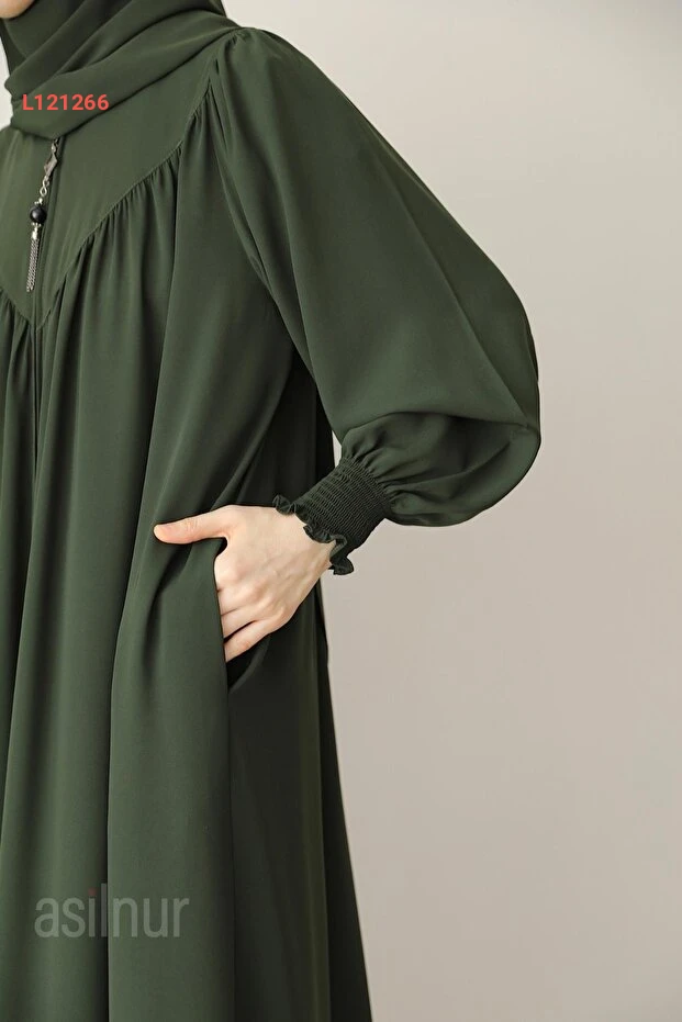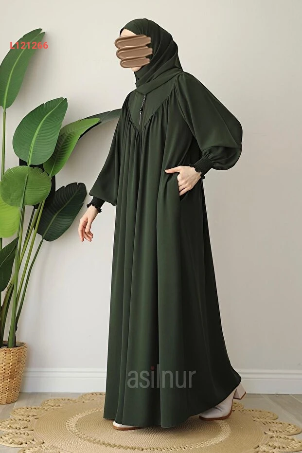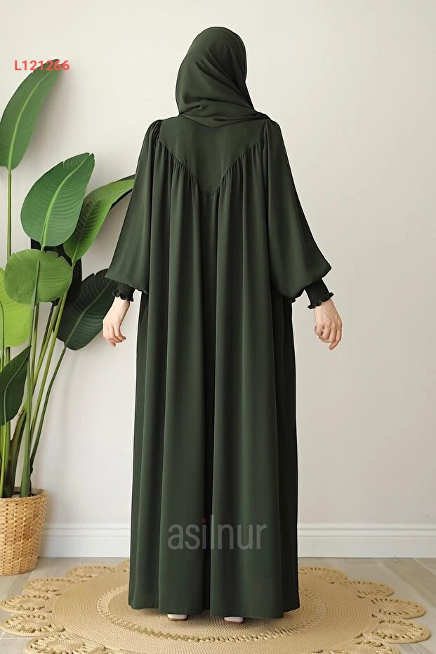 استمتع بأناقة لا تضاهى مع طقم ASİLNUR Elif Ferace المجهز بشال هدية، الذي يجمع بين التطريز الفاخر واللون الحاكي الأنيق. تصميمه المريح يضمن لك حرية الحركة، بينما يضيف الشال لمسة من الفخامة والإثراء لإطلالتك. احصلي على إطلالة مميزة تناسب كل المناسبات!