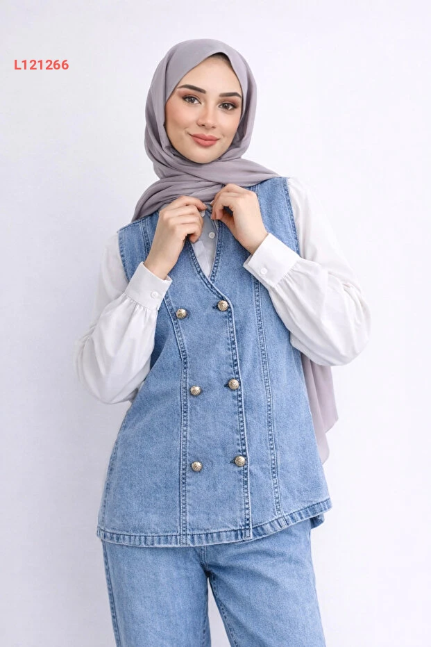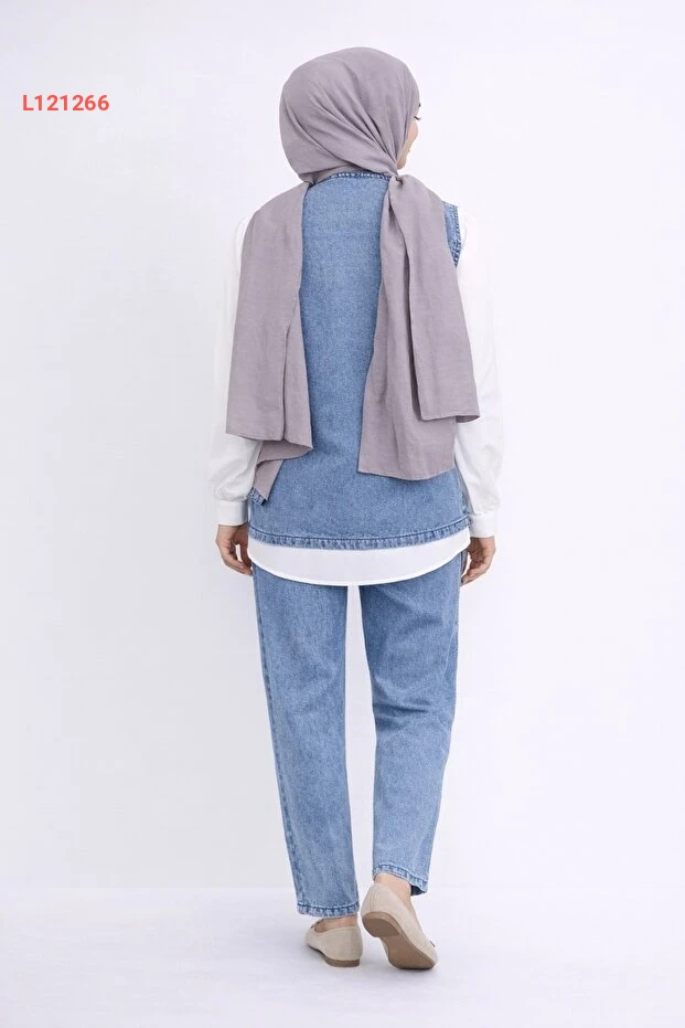 طقم جينز نسائي ثلاثي من أستيميا: قميص، سترة، وسروال