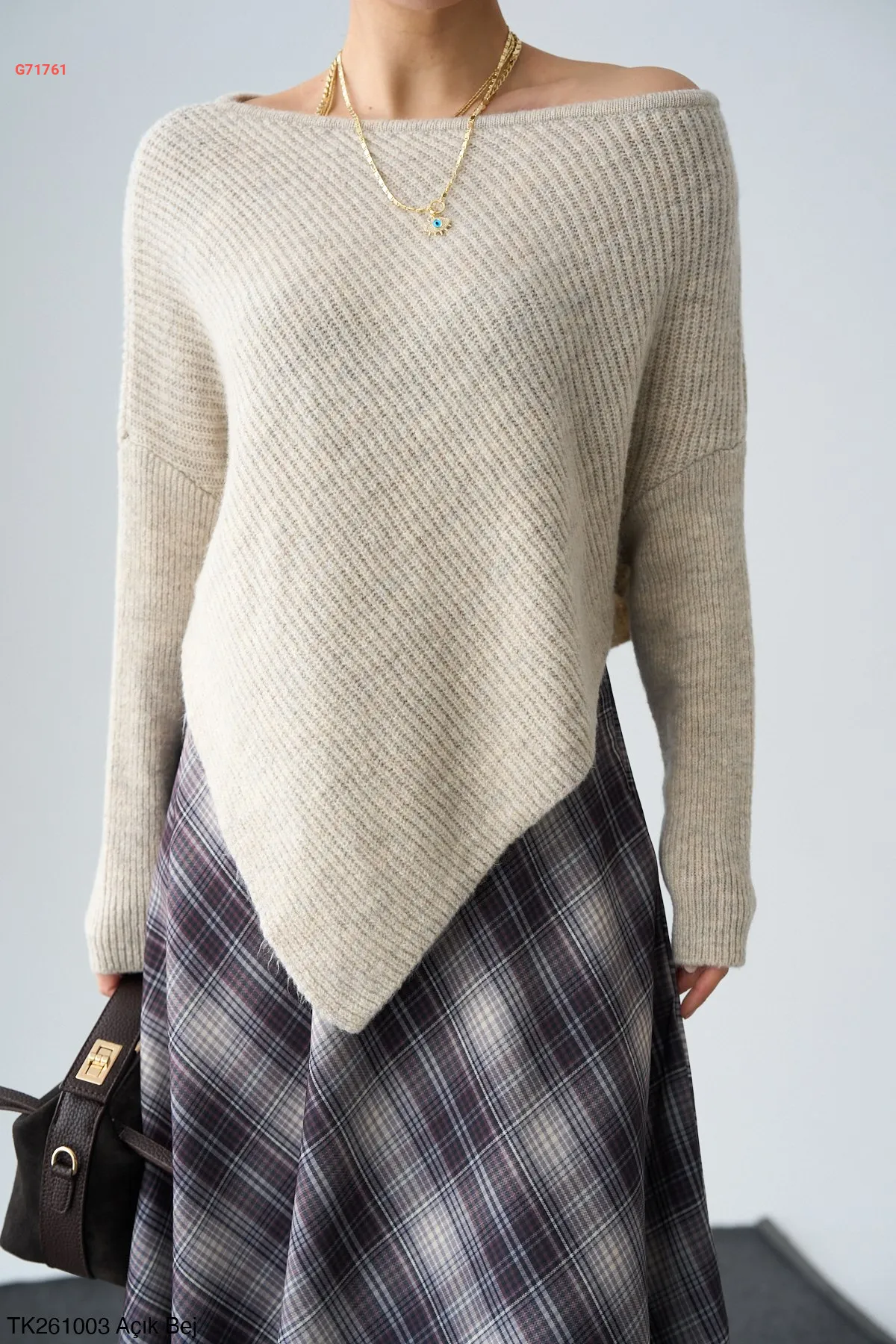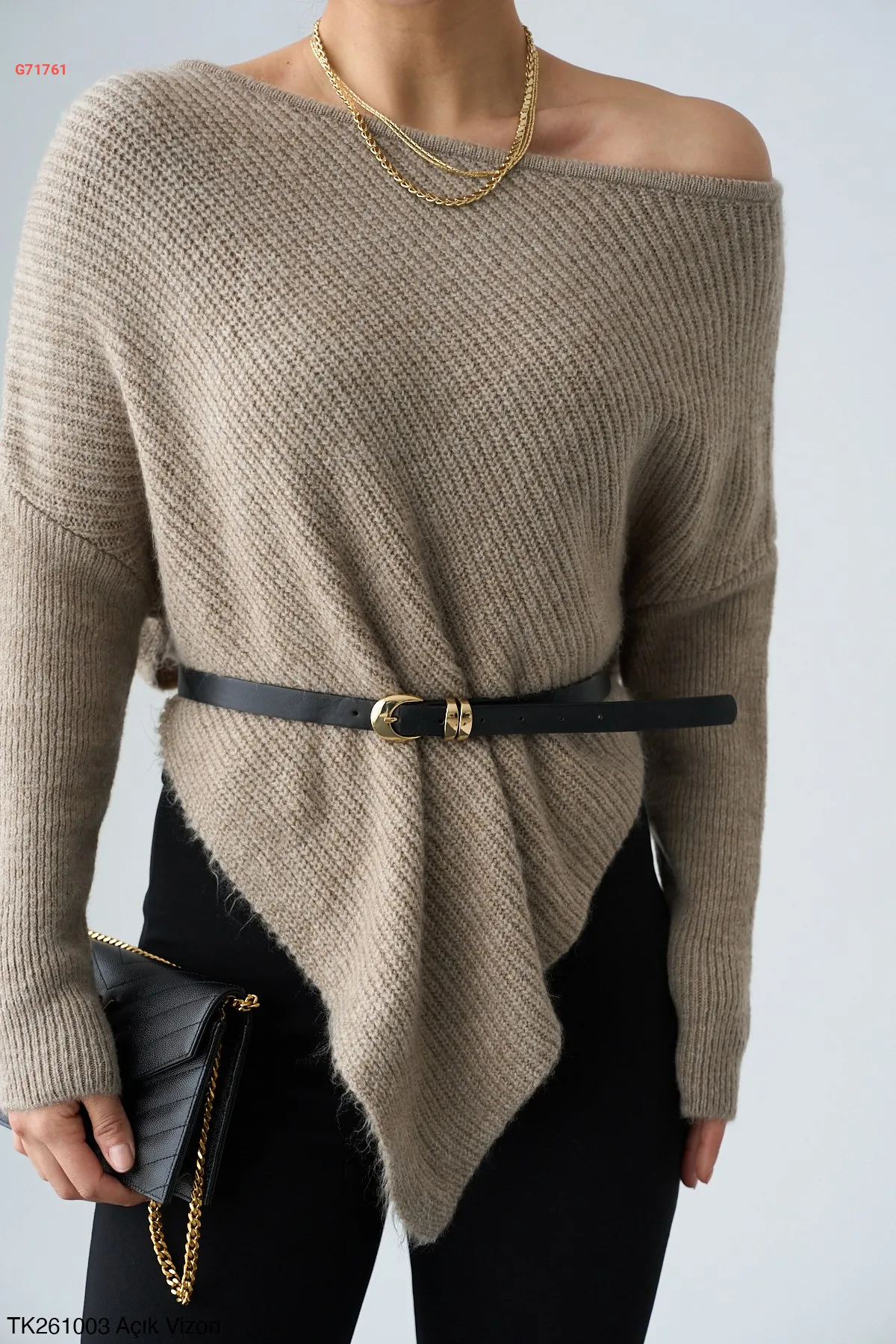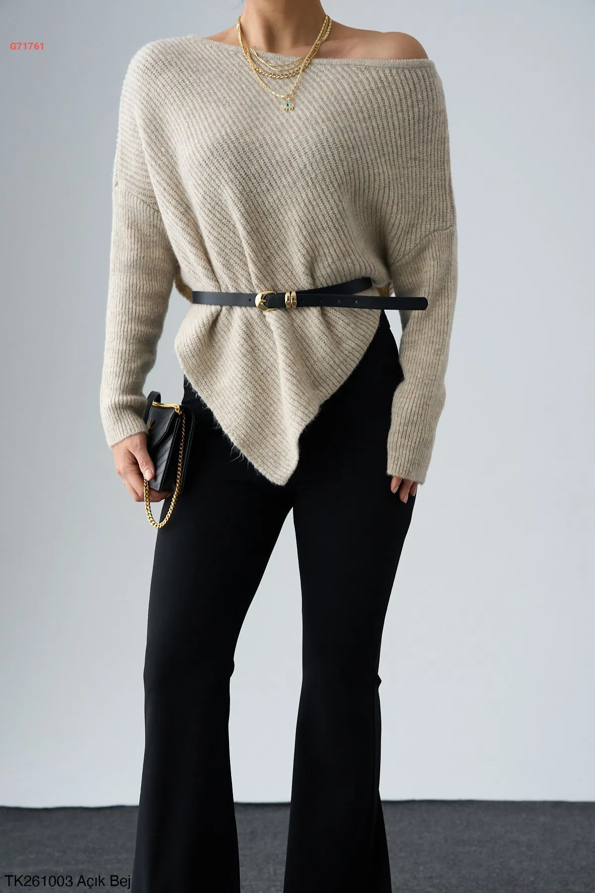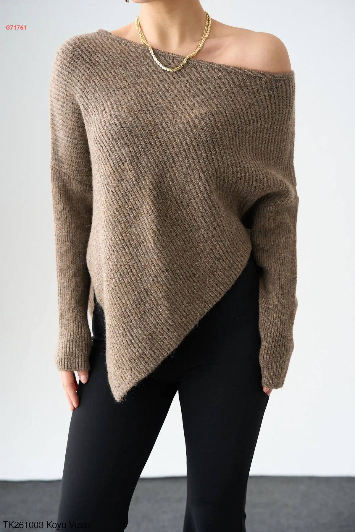 كنزة تريكو بطول غير متماثل