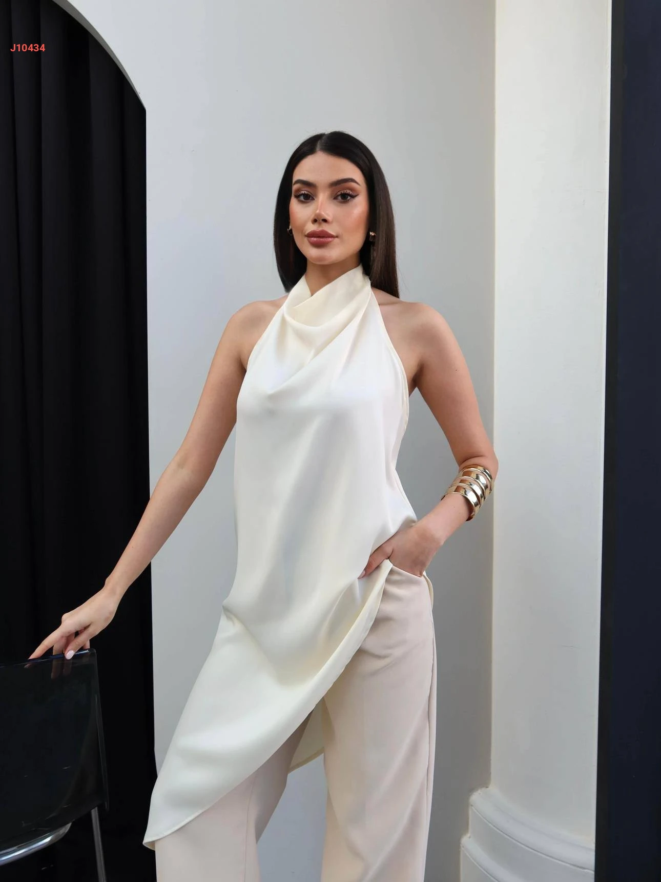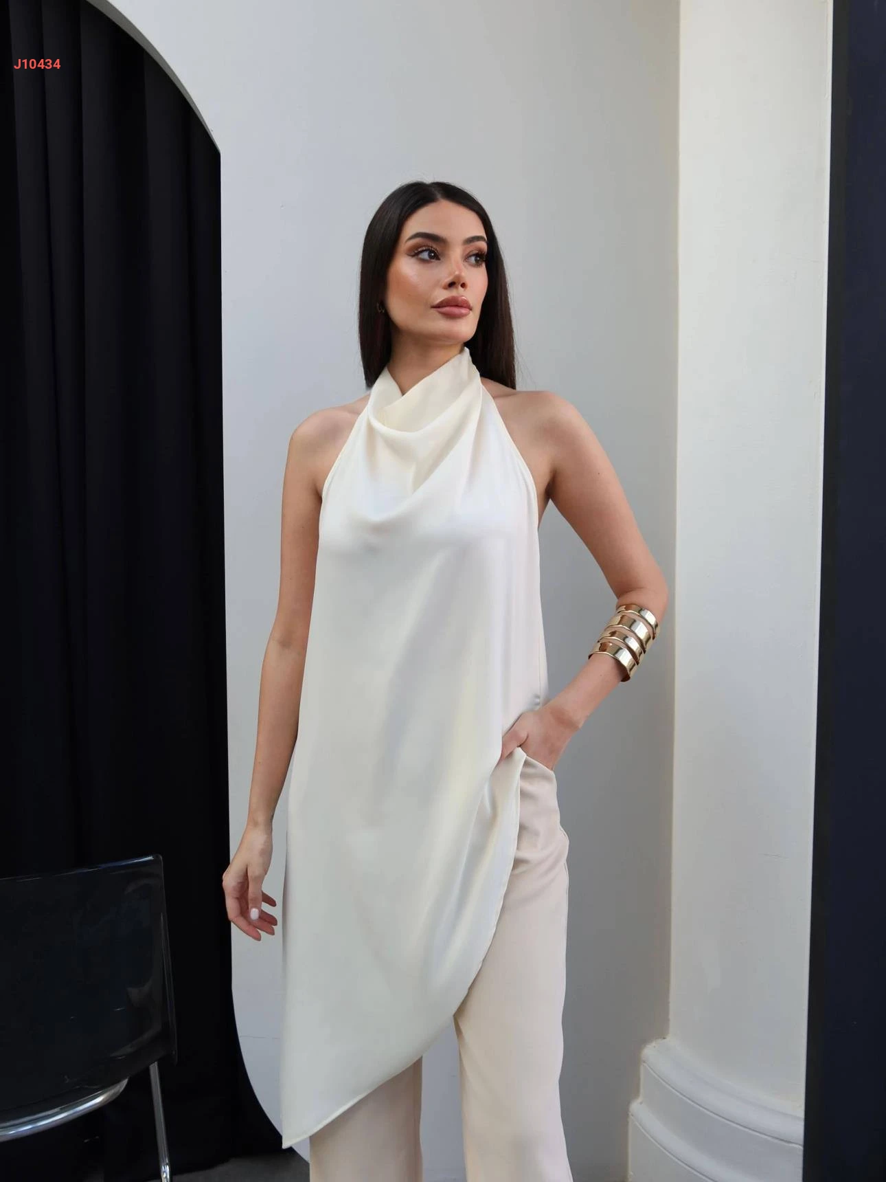 بلوزة مكشوفة الظهر بطول غير متماثل