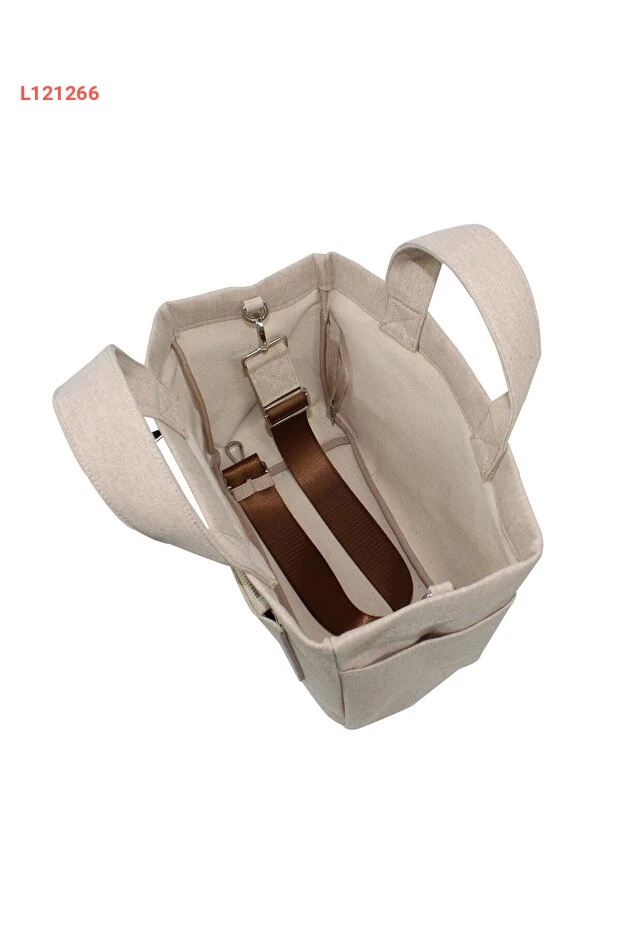 تحلّ حقيبة Atelier Bomonti Hishi Tote Bag بلون البيج الأنيق، مصنوعة من قماش كانفاس المتين، لتكون رفيقك المثالي في كل مناسبة. تتميز بتصميم واسع يتيح لك تنظيم ممتلكاتك بسهولة، بالإضافة إلى حقائب جانبية عملية لضمان سهولة الوصول إلى أغراضك المهمة. ارتقي بأناقتك اليومية مع لمسة من الرفاهية والراحة.
