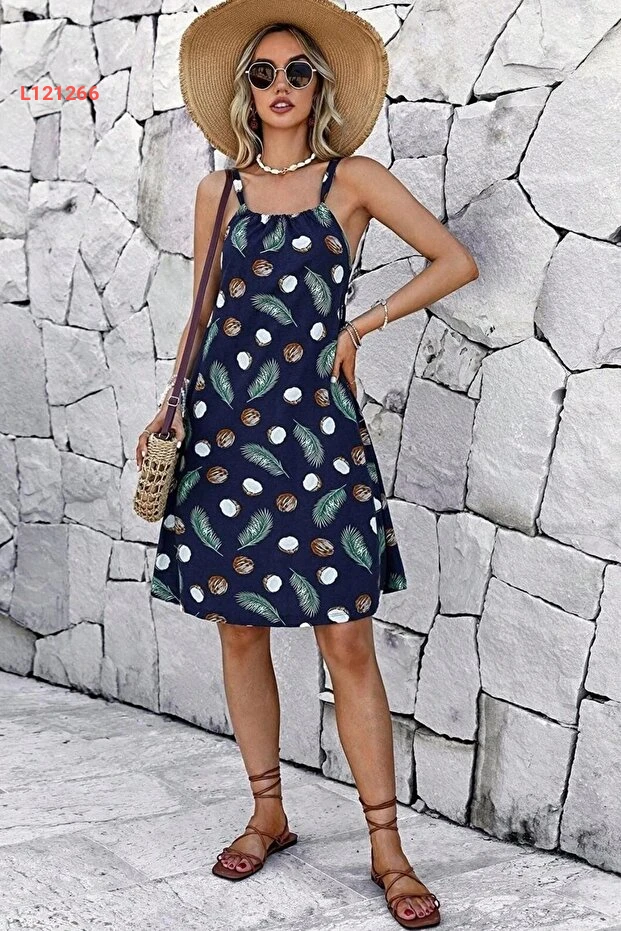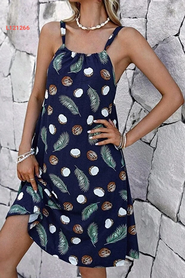 فستان ميني من القطن بنقشة جوز الهند للنساء من أفون
