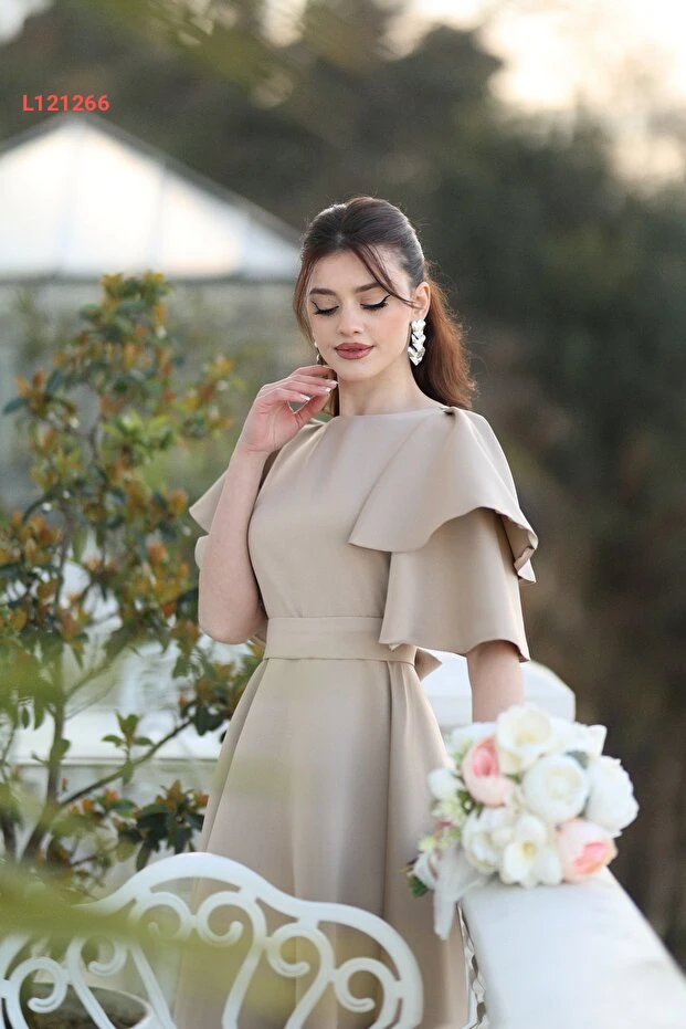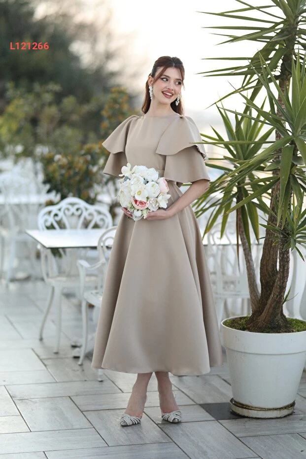 تألقي في مناسباتك الخاصة مع فستان AYŞEYAMAÇLI بلون بيج الراقي وتصميمه الأنيق بياقة قارب. يمتاز بكونه Midi بطول مثالي يناسب كل الأجسام، مما يمنحك مظهرًا أنثويًا وجذابًا. صُمم بعناية ليبرز أنوثتك ويضمن لك راحة في الحركة طوال الحفل.