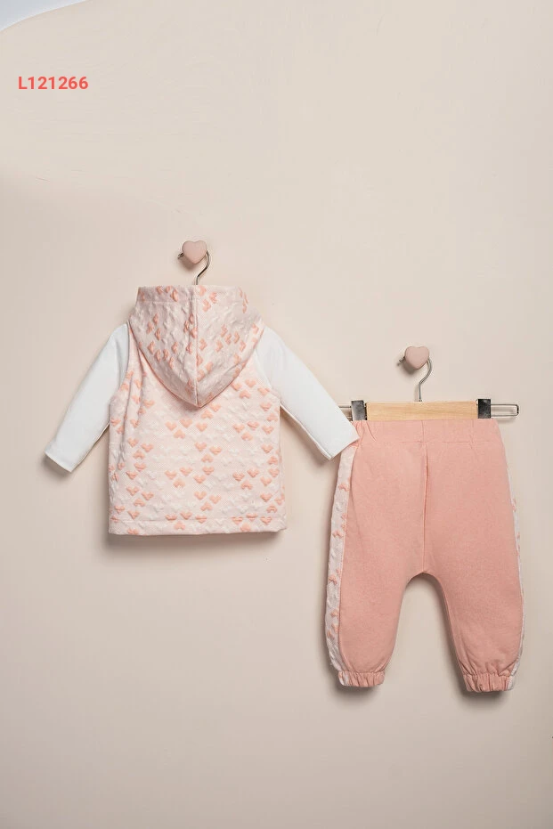 اجعل صغيرك يتألق بأناقة مع طقم Baby Fou Yelekli Kalp Desen المكون من 3 قطع! يتميز بتصميم قلوب لطيف ولون جذاب، مما يجعله مثاليًا للمناسبات اليومية. مصنوعة من مواد ناعمة ومريحة، ستضمن راحتهم طوال اليوم، مما يجعل كل لحظة معهم مليئة بالحب والمرح!