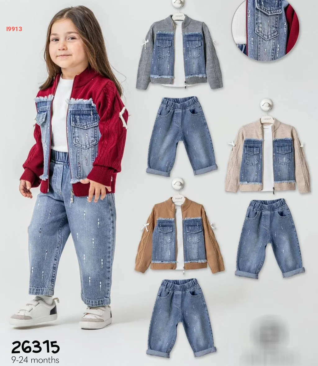 طقم بنطال بيبي بناتي جينز