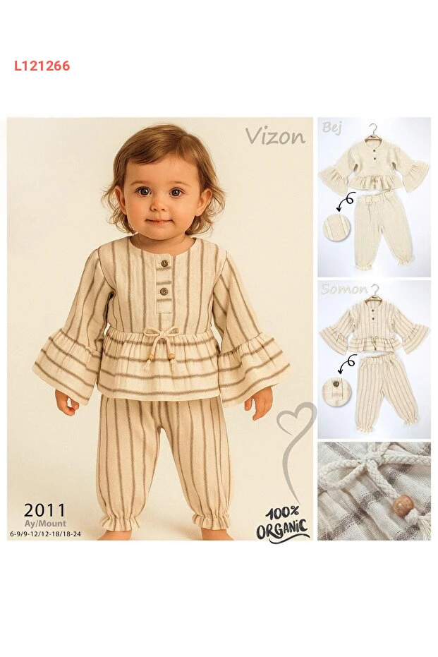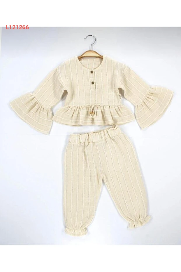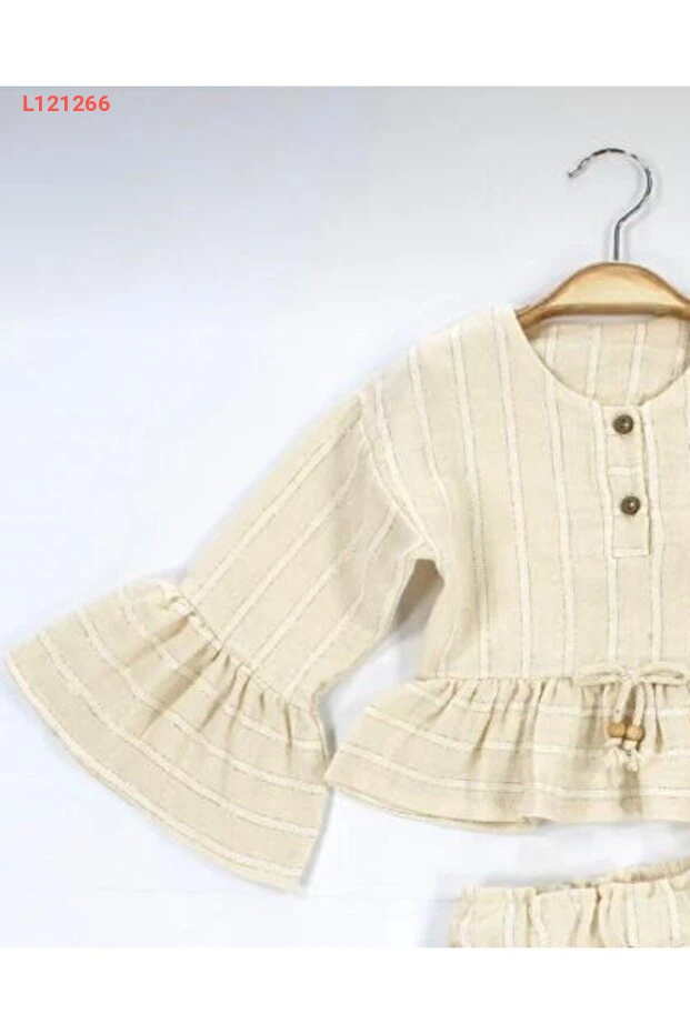 دللي صغيرتك بأناقة مع طقم Babyhola الفاخر الذي يتكون من أعلى بلوزة ذات أكمام ملونة وزخارف لامعة، إلى جانب بنطلون مريح. مصمم من قماش الموسلين الناعم والمناسب للبشرة الحساسة، هذا الطقم يضمن لها راحة مطلقة ومظهر ساحر في المناسبات الخاصة. اجعلي كل لحظة لها مليئة بالسعادة والأناقة!