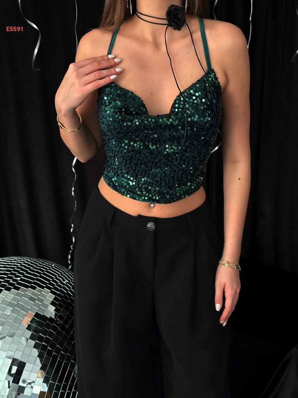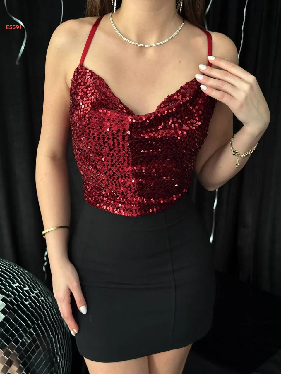بلوزة باييت مقطعة من الخلف