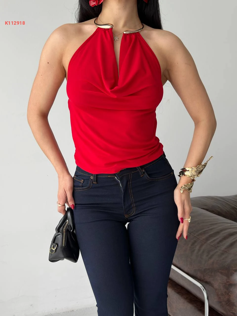 بلوزة مكشوفة الظهر باكسسوار عالرقبة
