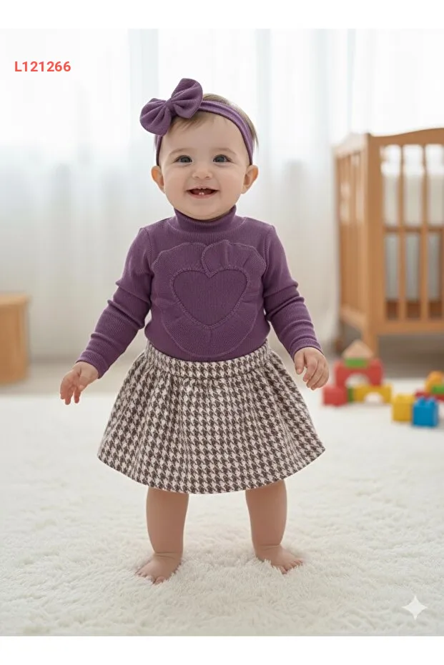 اكتشفي مجموعة BAHNUR للأطفال التي تجمع بين الأناقة والراحة! تتضمن هذه الطقم الرائع بلوزة مزينة بالقلوب مع تنورة بتصميم الكازاياه، بالإضافة إلى باندانا مميزة لتكمل إطلالة طفلتك بأناقة. مثالية لمناسبات اللعب والخروج، مصنوعة من أقمشة ناعمة تسمح بحركة حرة وراحة طوال اليوم.