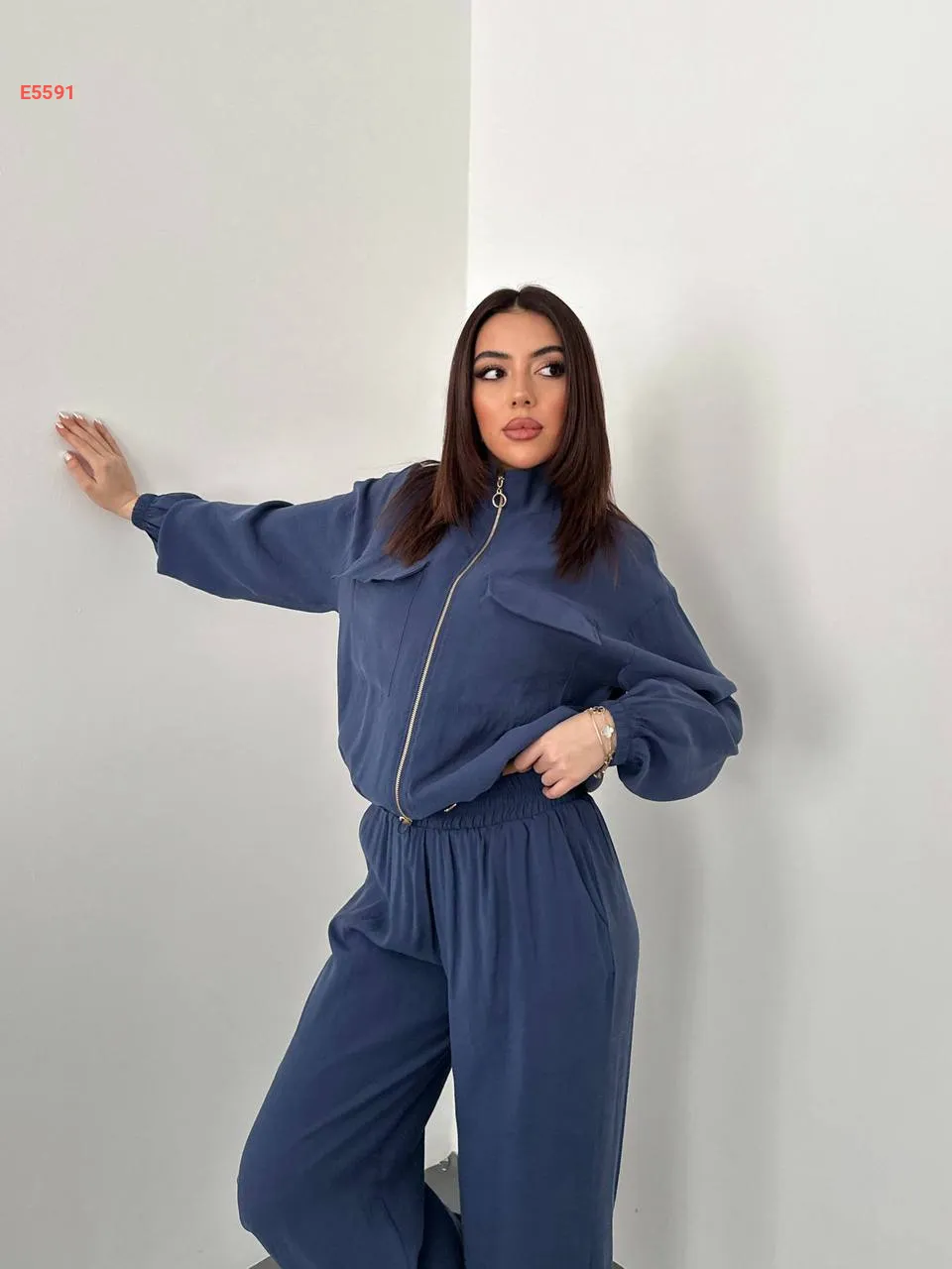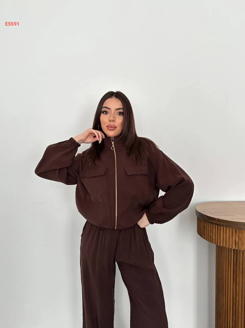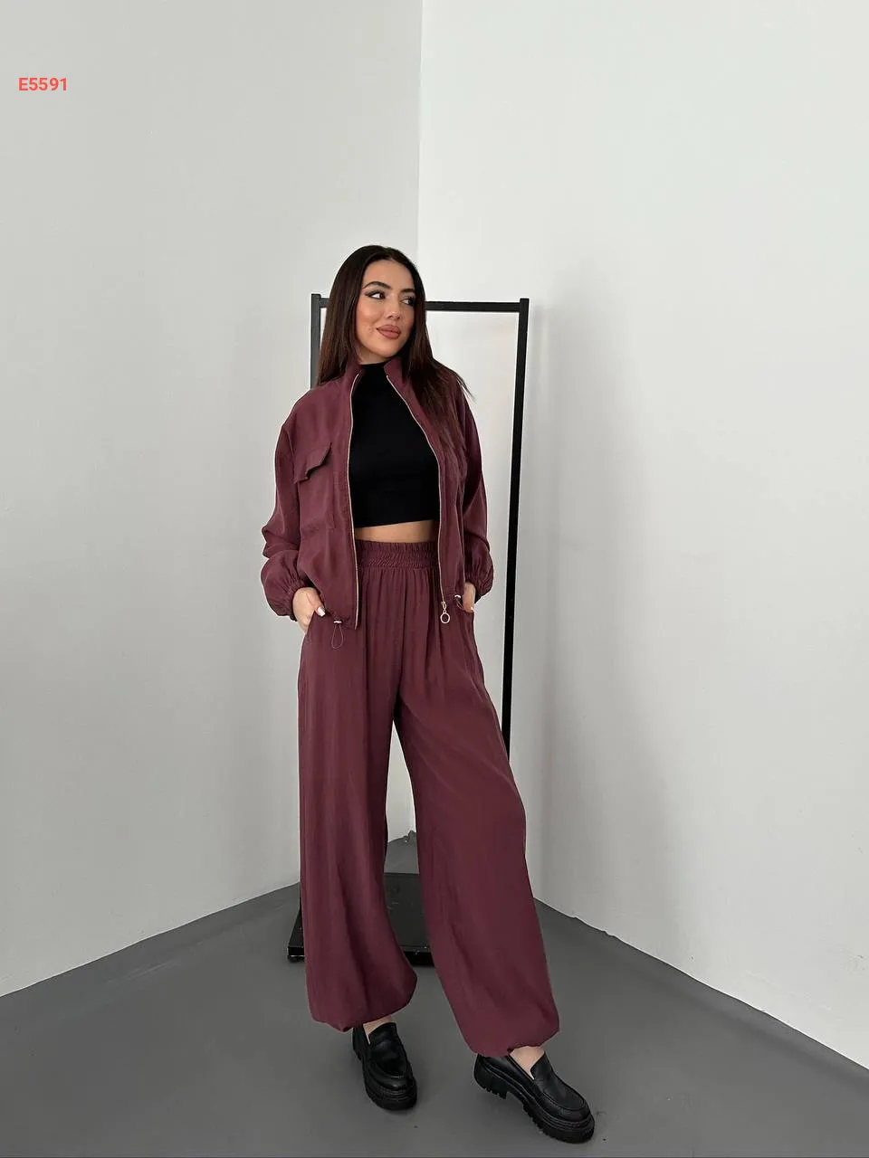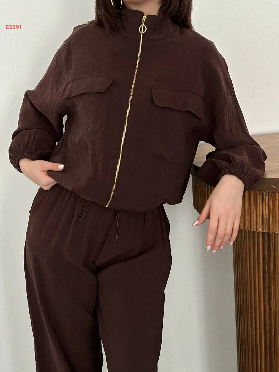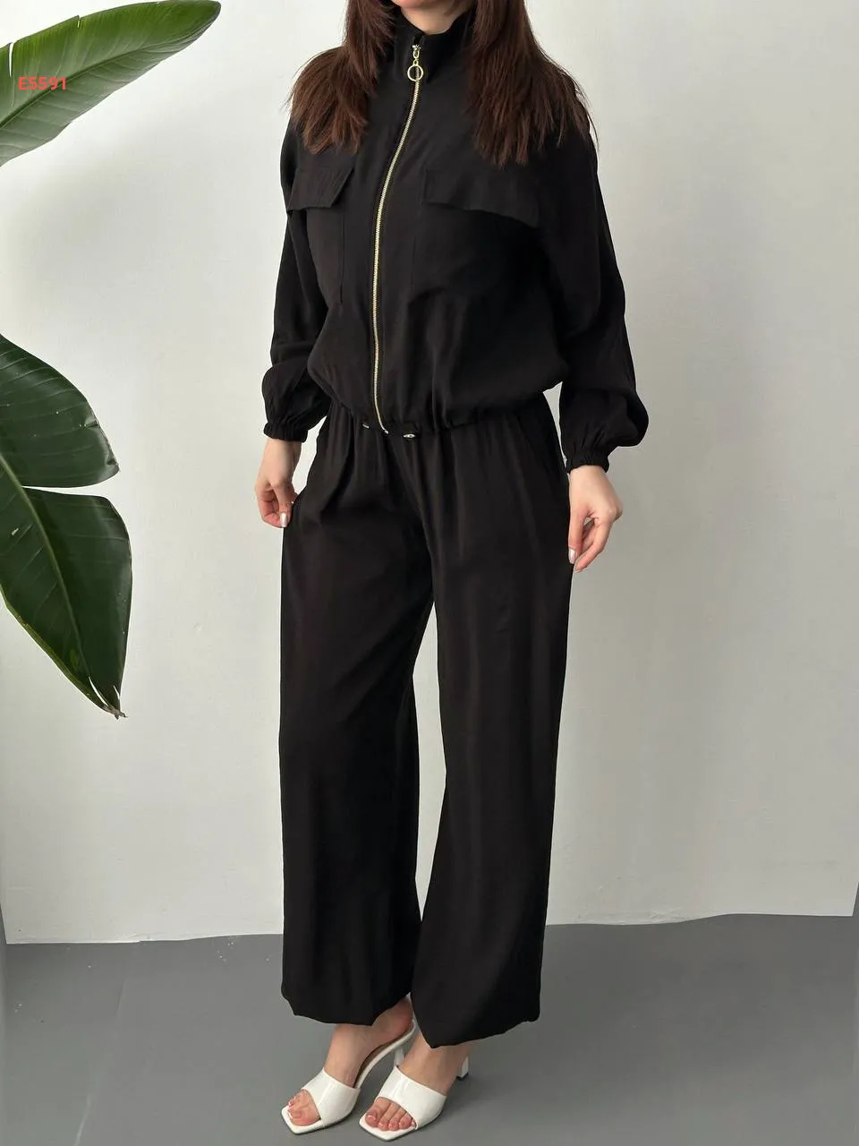 طقم بنطال بالون وجاكيت بسحاب