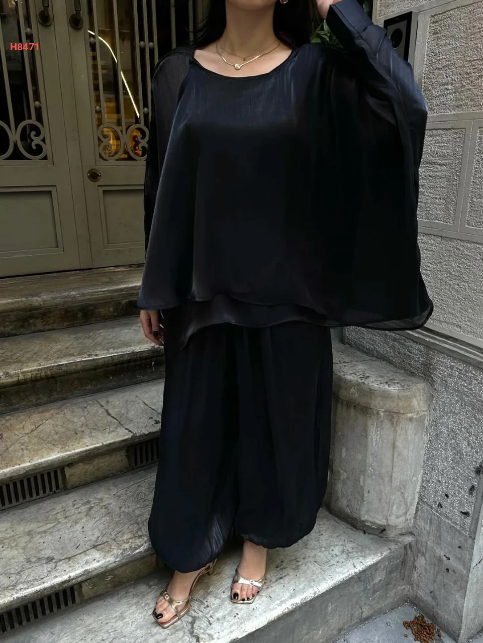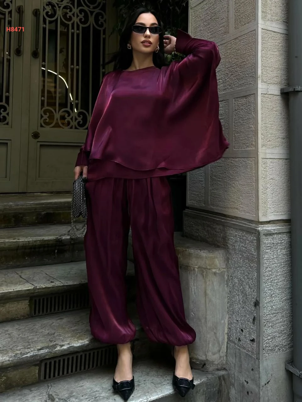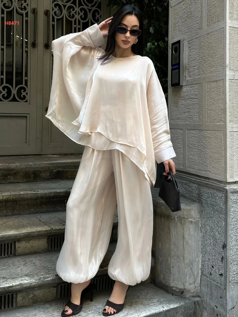 طقم بنطال بالون وبلوزة كشكش