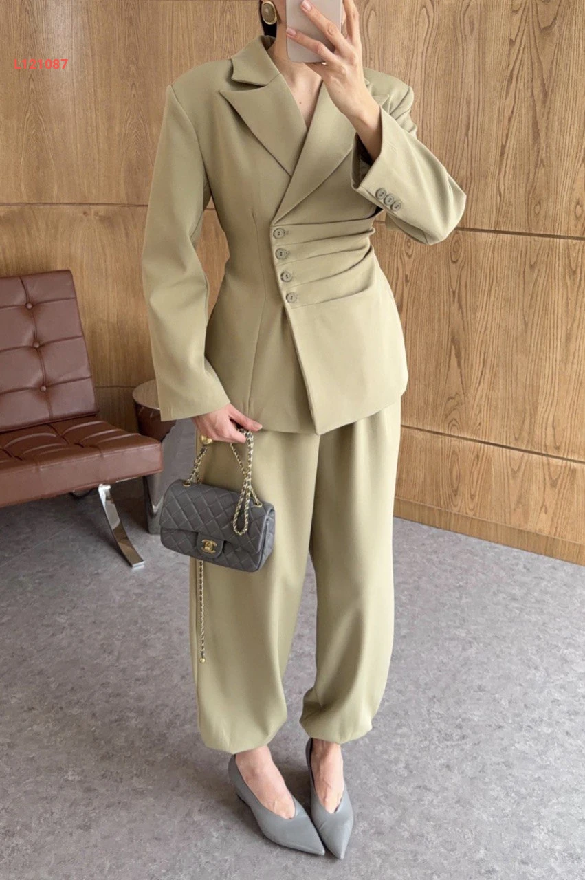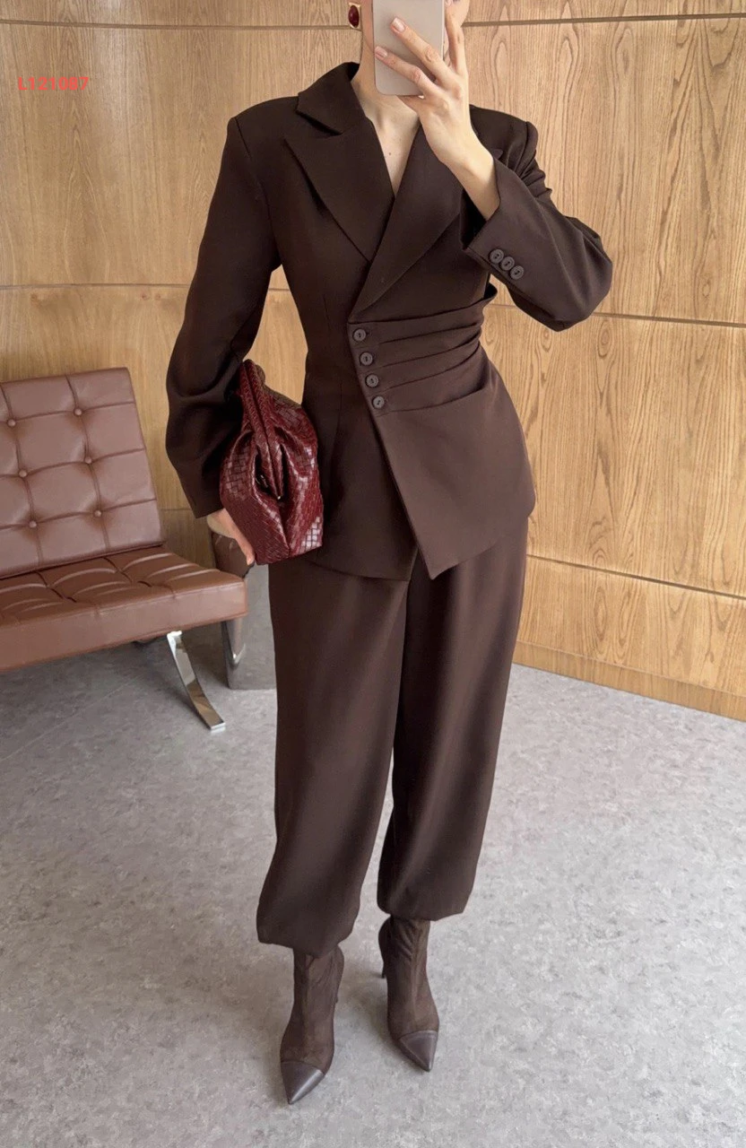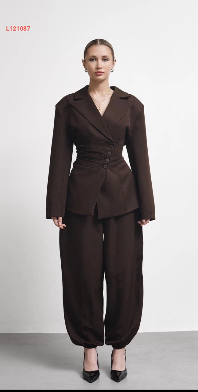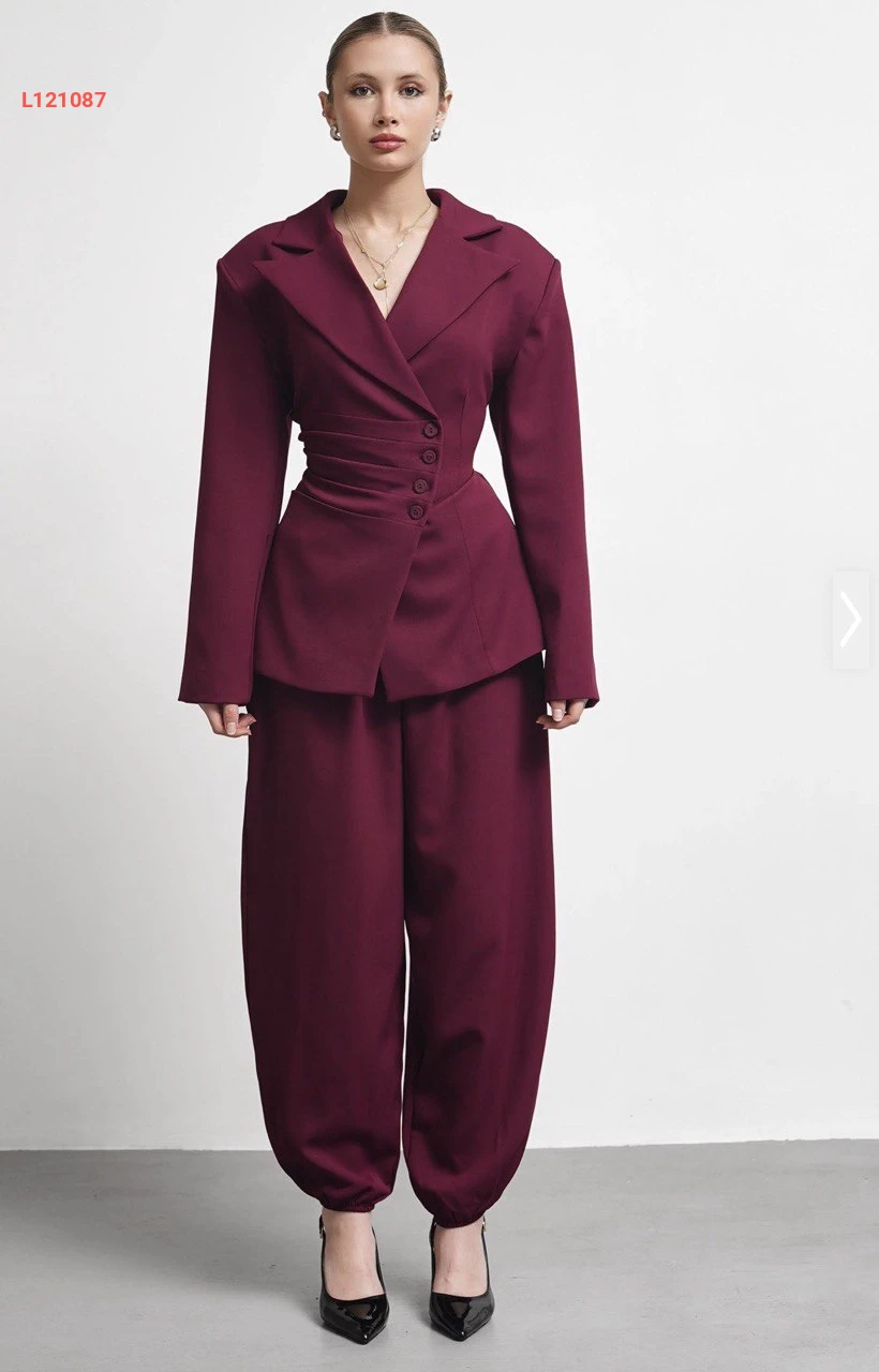 طقم بنطال بالون وبليزر بربطة خلفية