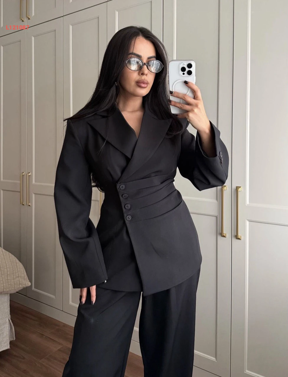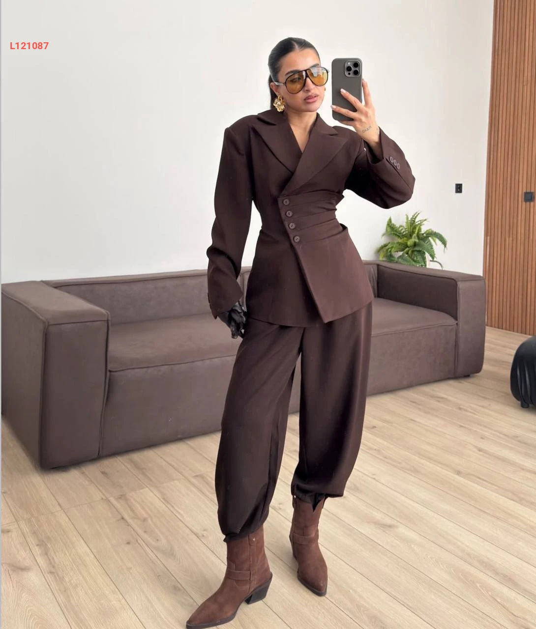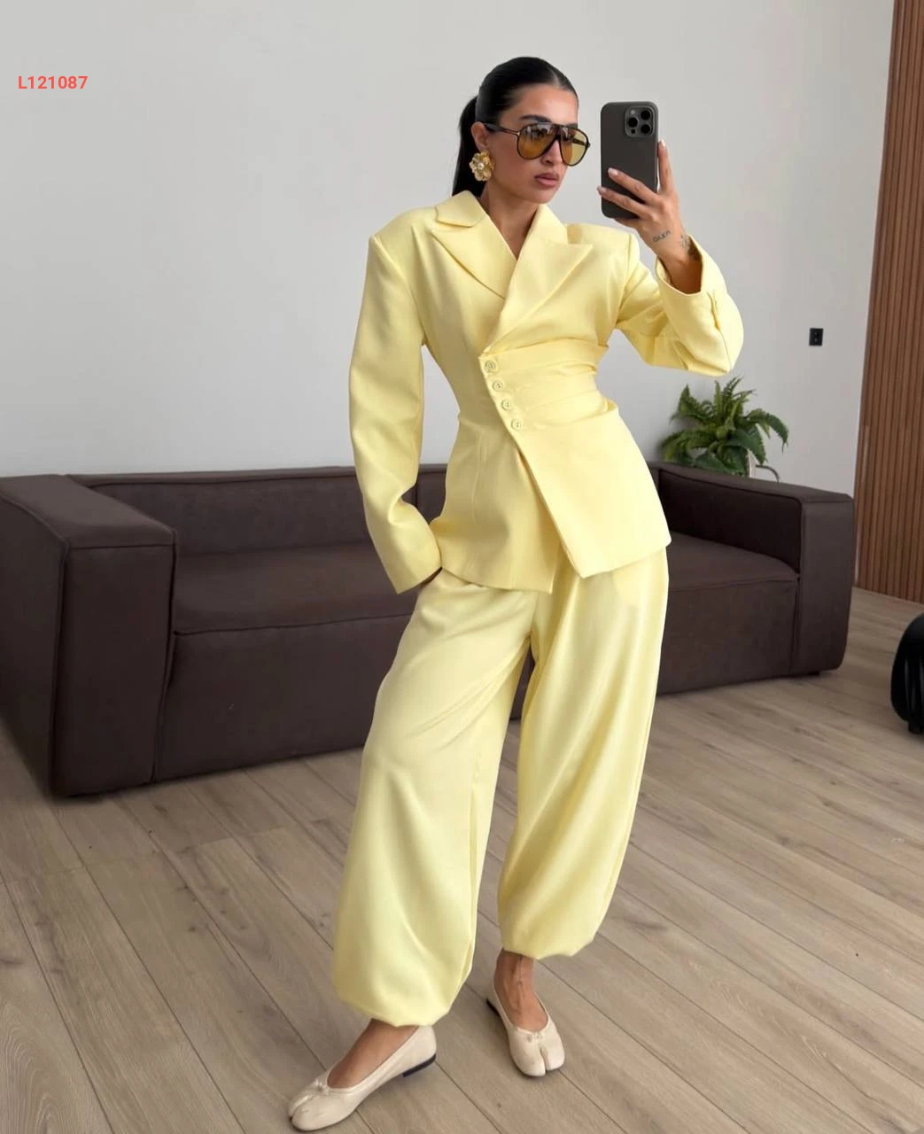 طقم بنطال بالون وبليزر بربطة خلفية