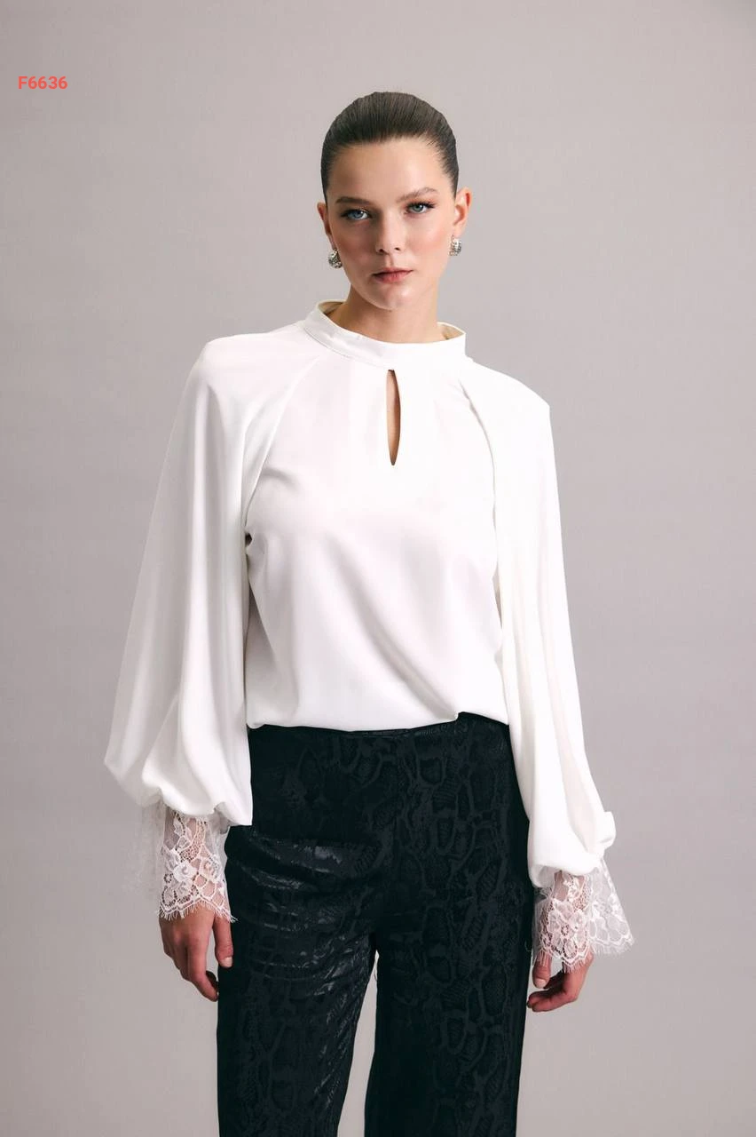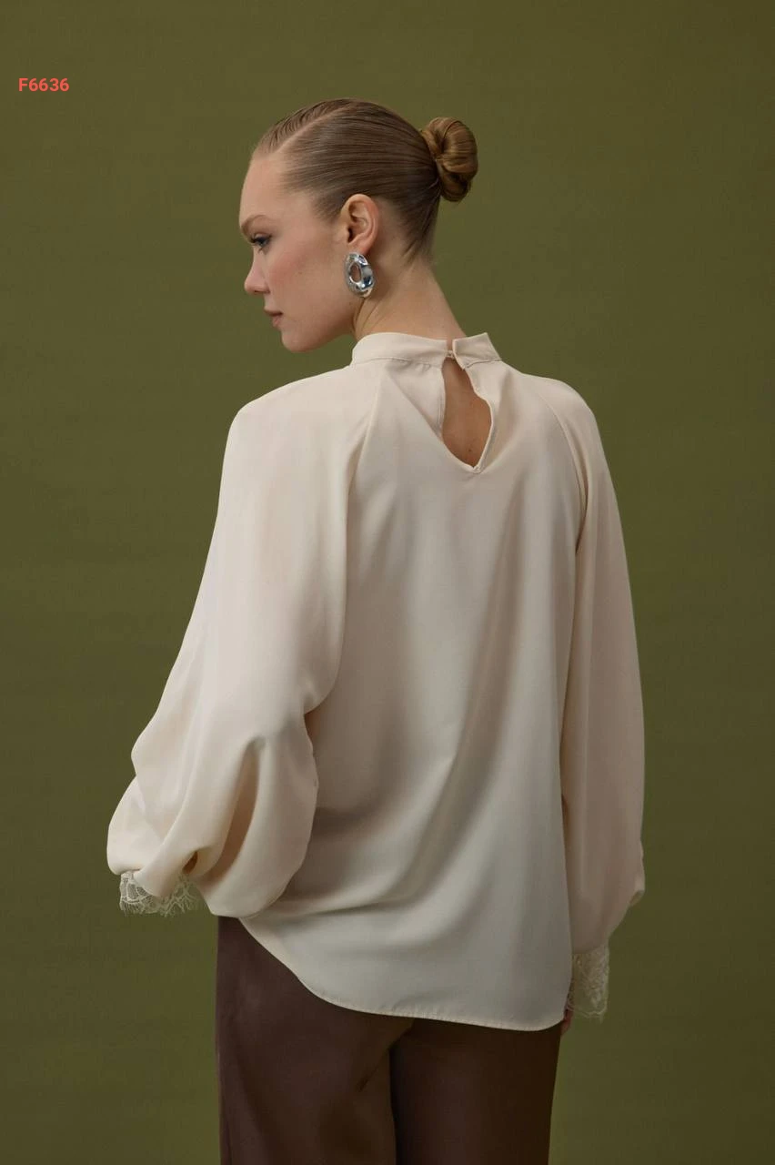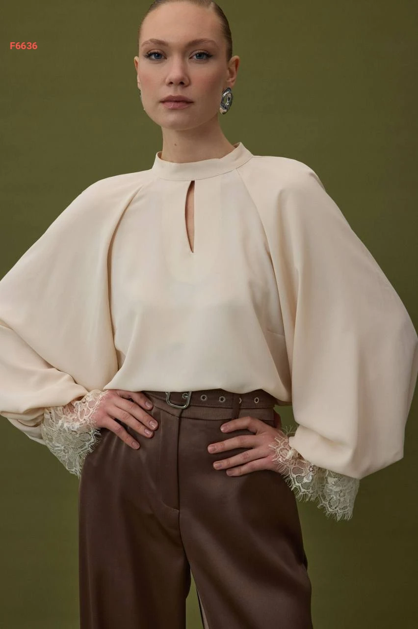 بلوزة بأكمام بالونية مكلف دانتيل