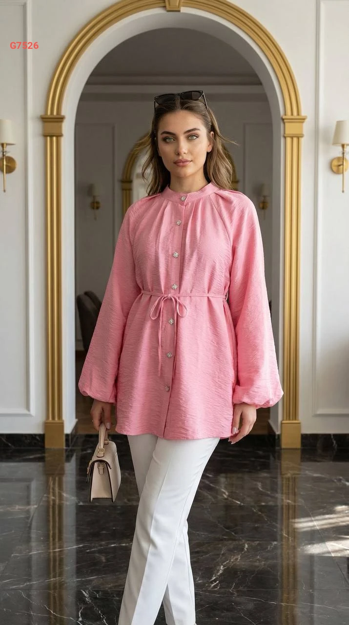 قميص ساتان بأكمام بالونية