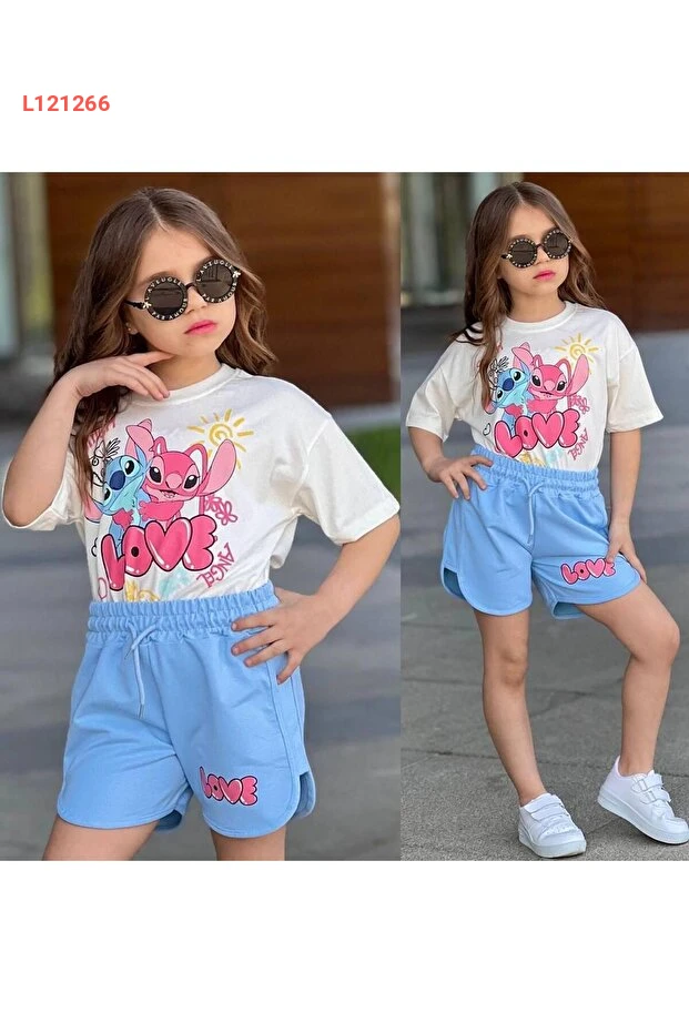 طقم صيفي بناتي بملابس قصيرة مطبوعة بتصميم ستيتش من بامبام – 72077