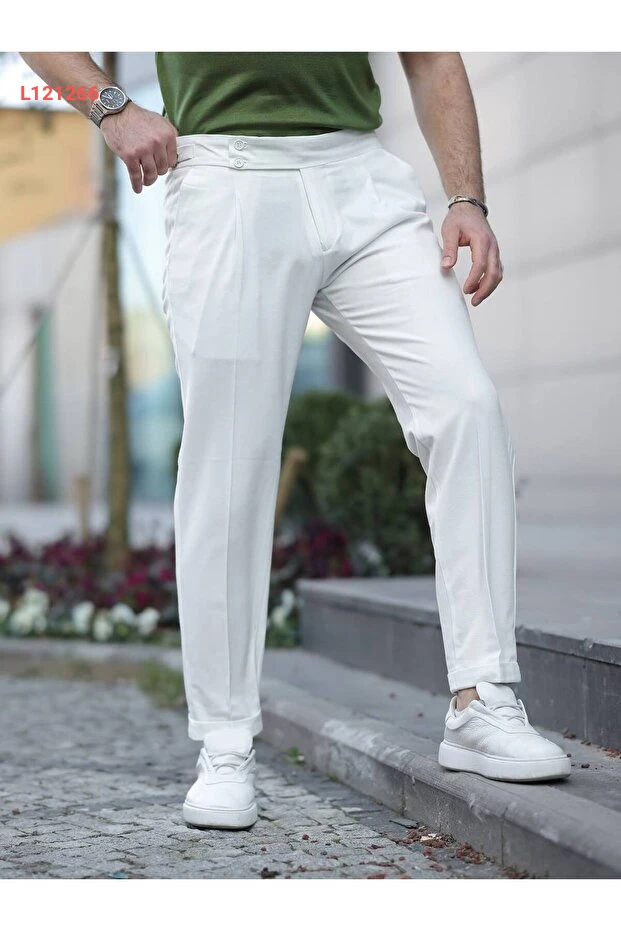 بازل.كو بنطال قماش مزدوج بخصر كبير للرجال بأسلوب قديم