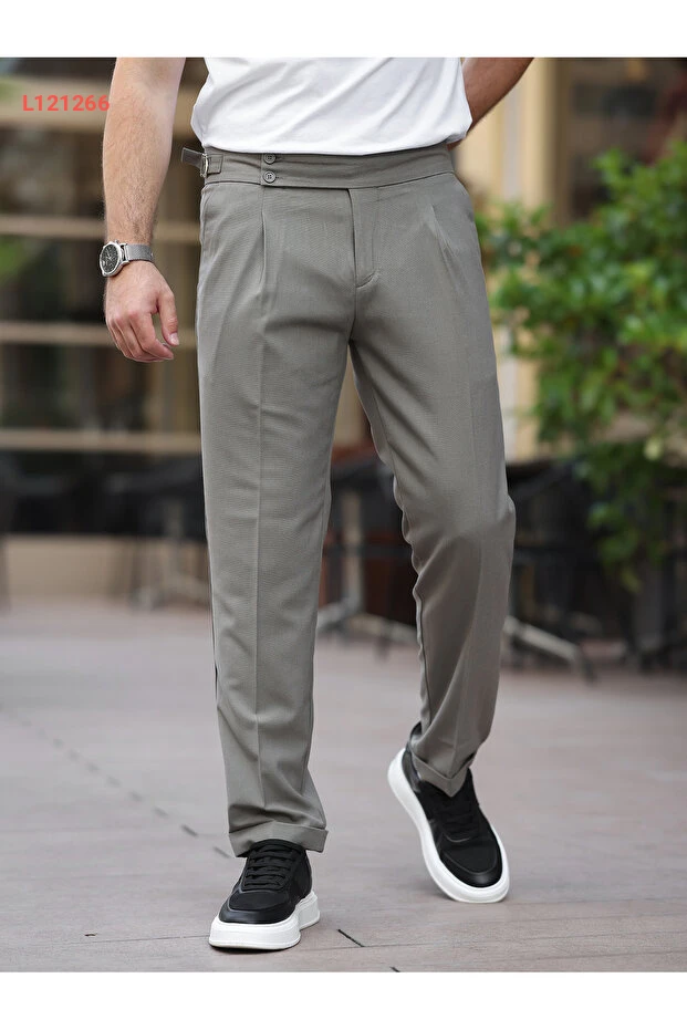 ارتق بأناقتك مع بنطال BASEL.CO Old Money Pileli Likralı Kumaş، المصنوع من قماش مرن يضمن الراحة والحركة السلسة. التصميم الكلاسيكي مع التفاصيل المعاصرة يمنحك مظهرًا أنيقًا وجذابًا في كل مناسبة، سواء كنت في العمل أو في موعد مع الأصدقاء.