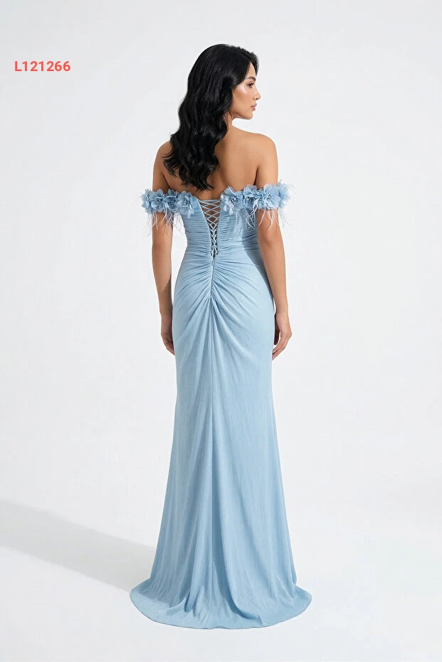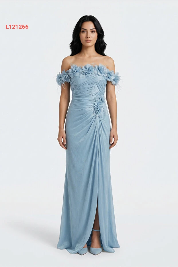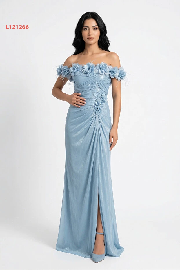 BDM Exclusive Rosaline El İşçiliği Çiçek Detaylı Drapeli Uzun Abiye عالي الجودة. مثالي للاستخدام اليومي مع متانة وتصميم ممتاز.