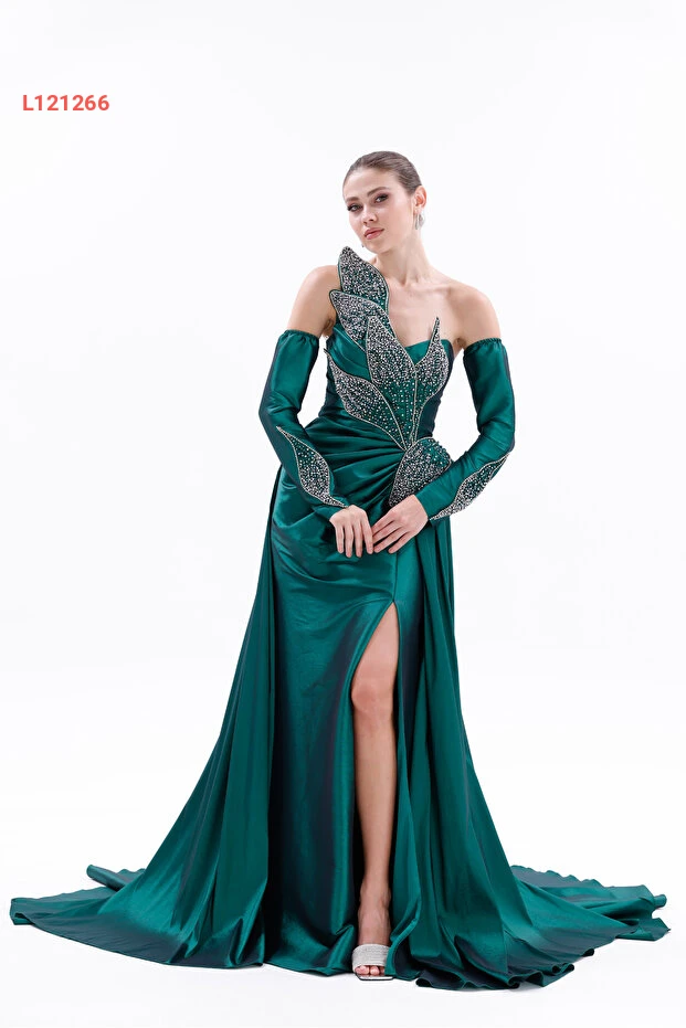 BDM Exclusive Taş İşlemeli Yaprak Detaylı Drapeli Tafta Abiye Elbise عالي الجودة. مثالي للاستخدام اليومي مع متانة وتصميم ممتاز.