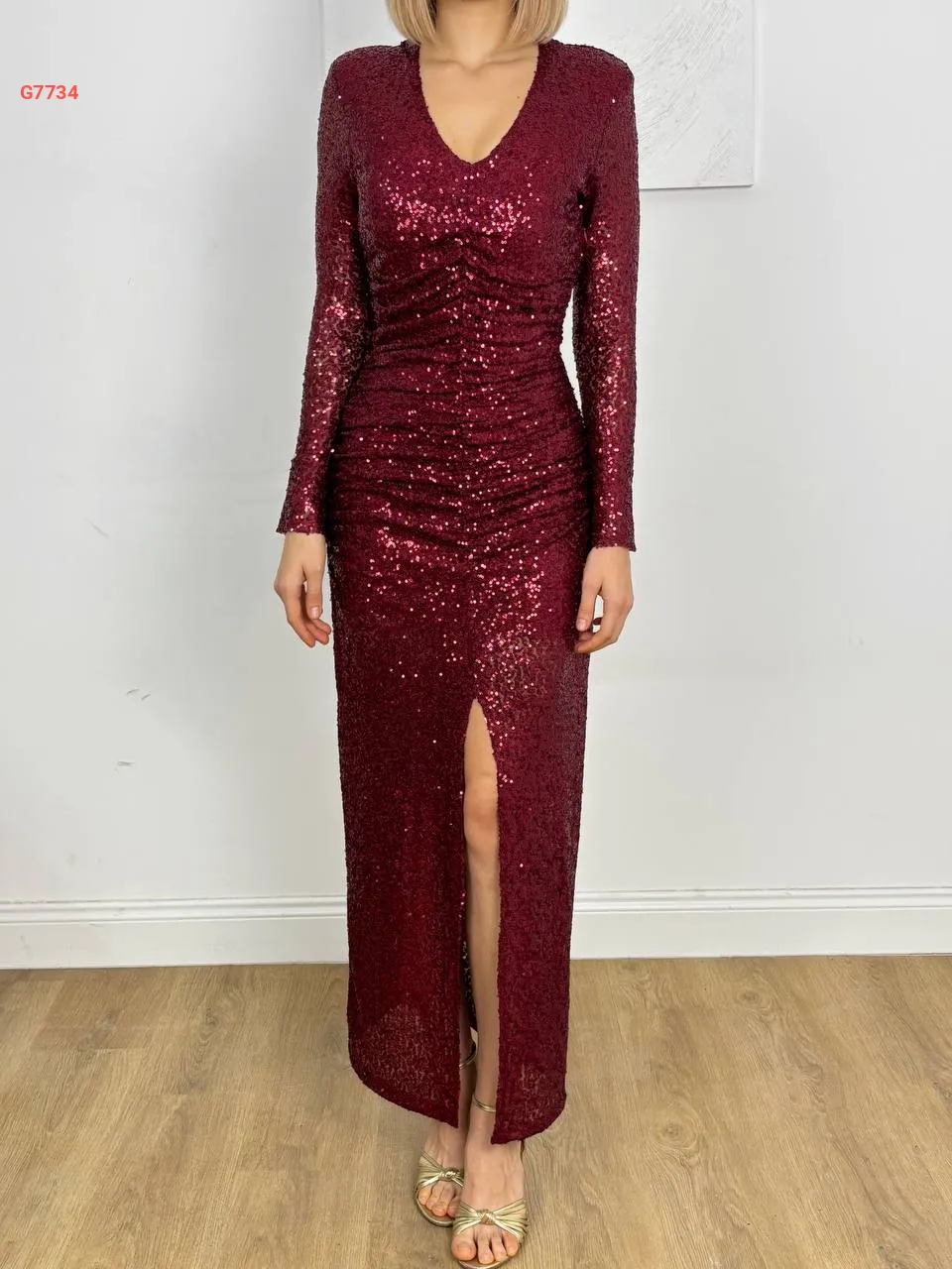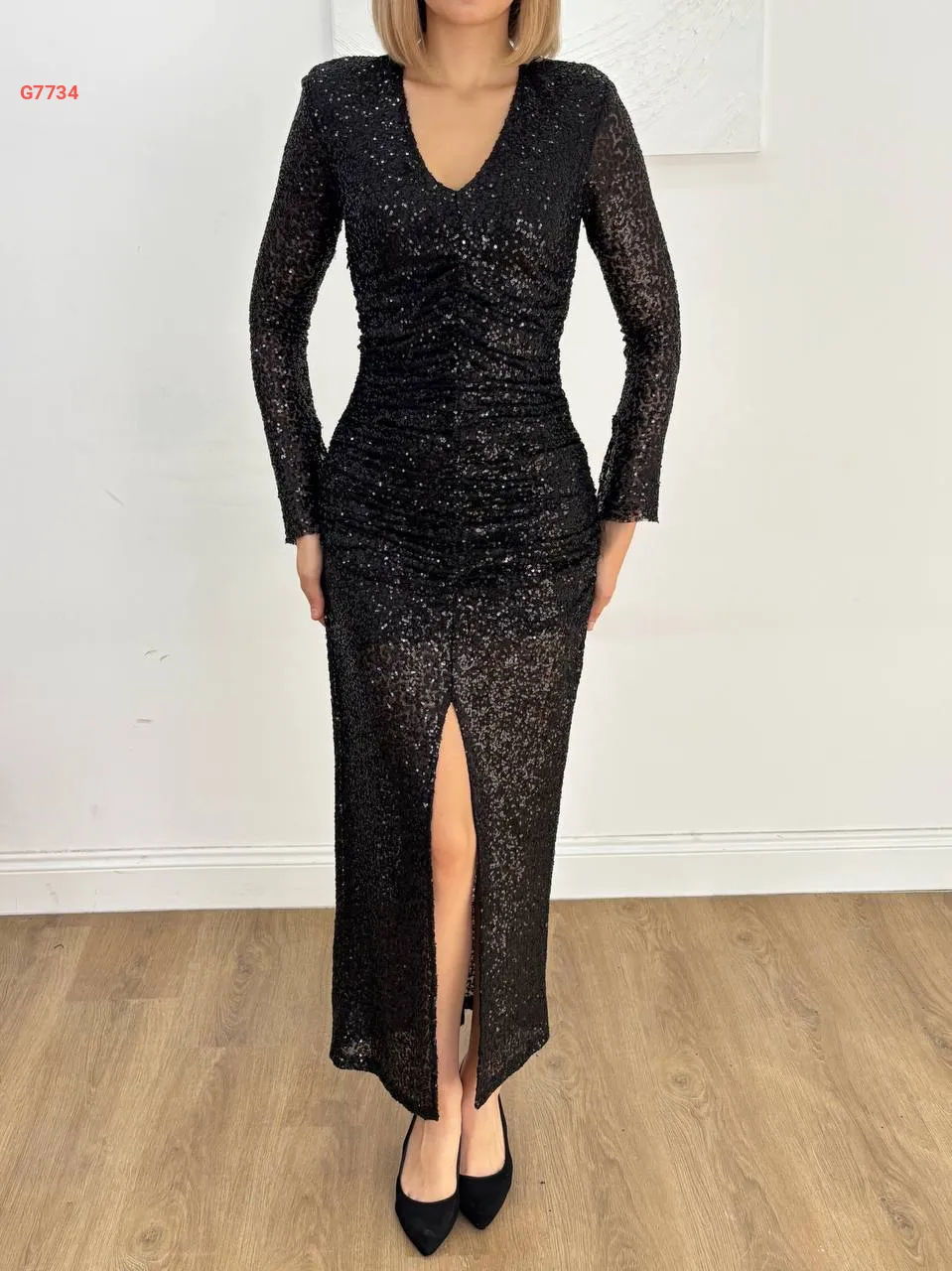 فستان باييت بفتحة أمامية