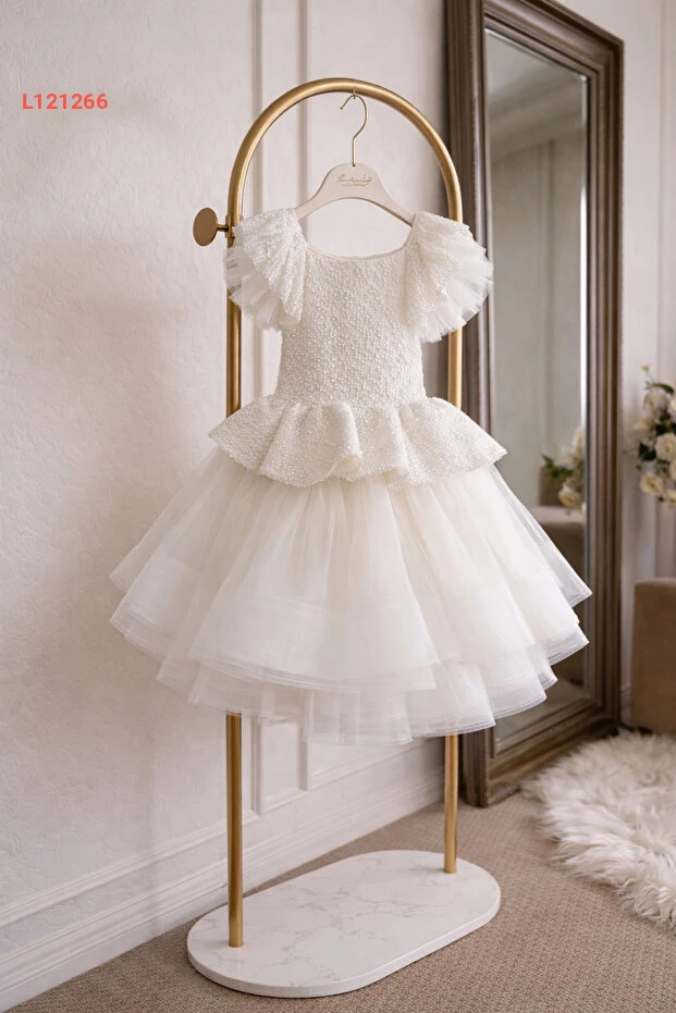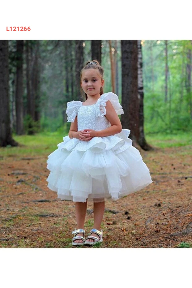 فستان حفلات بنات بتصميم متعدد الطبقات مع ترتر - أبيض-أزرق-أسود، للأعمار من 2 إلى 12 سنة، مثالي للتخرج