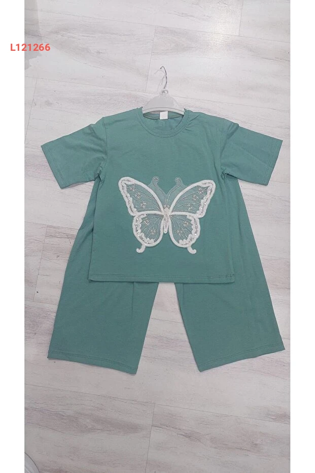 مجموعة صيفية كاجوال وراقية للفتيات بتصميم فراشة مطرزة - 2 قطعة من القطن