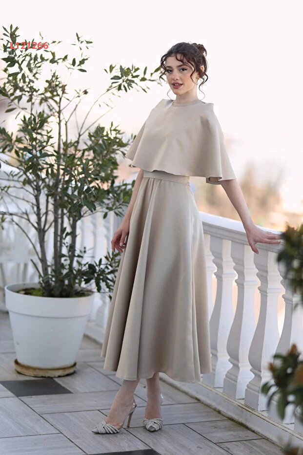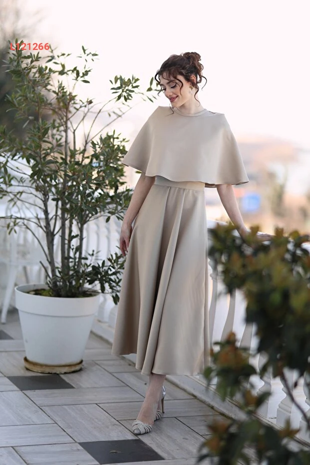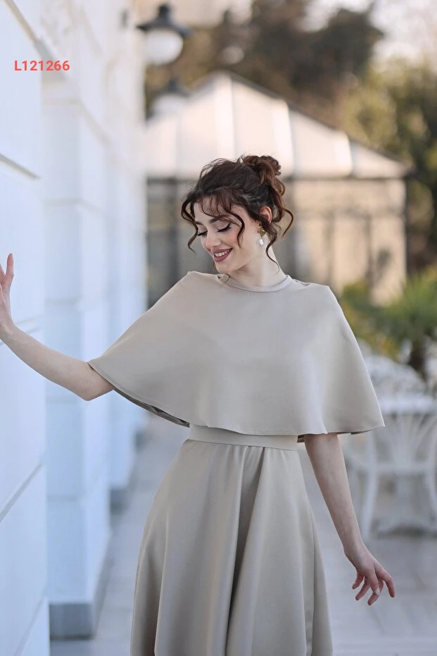 استمتعي بأناقتكِ في لحظاتكِ الخاصة مع فستان التخرج/الخطوبة النسائي بلون البيج الرائع، الذي يتميز بتصميمه الفريد مع الكاب الأنيق. يجمع بين الراحة والفخامة، ليمنحكِ إطلالة مبهرة تأسر القلوب في كل مناسبة.