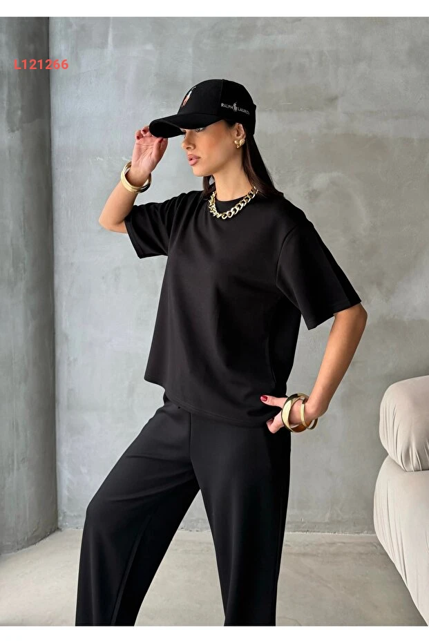 استمتع بالراحة والأناقة مع طقم BEJNA الرياضي القصير الأكمام للنساء بلونه الأسود الأنيق. مصنوع من خامة المودال الناعمة، يوفر لك إحساساً فاخراً على البشرة ويضمن حرية الحركة في كل الأنشطة. سواء كنت في صالة الألعاب الرياضية أو تتمشين في الحديقة، ستحصلين على إطلالة عصرية تجمع بين الأداء والراحة.