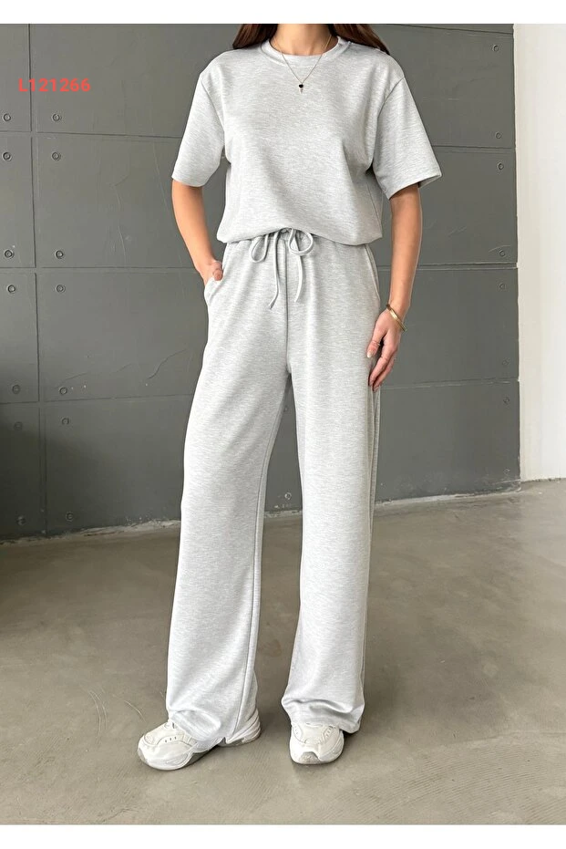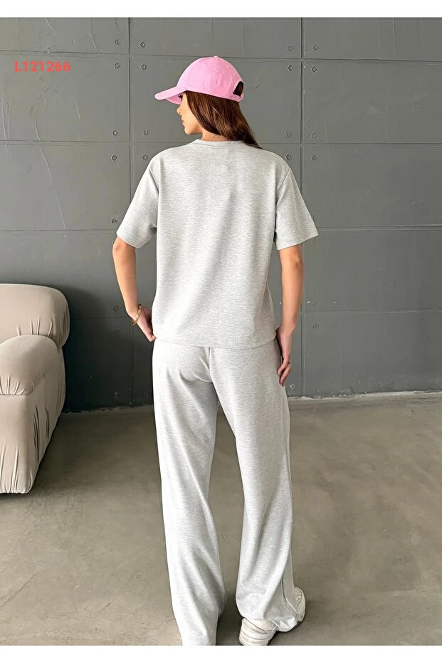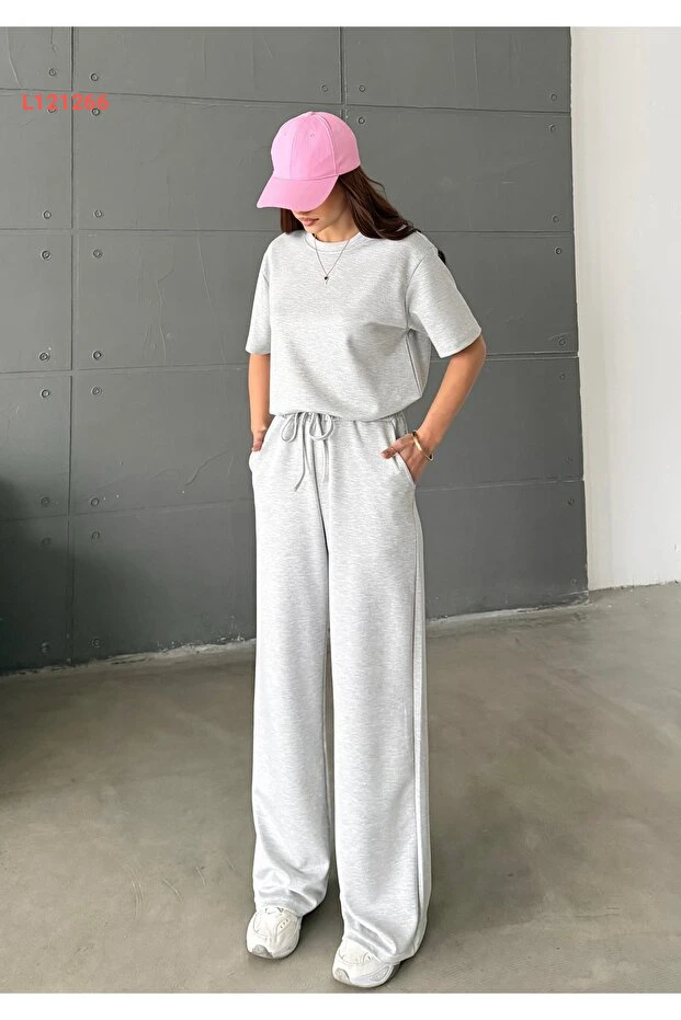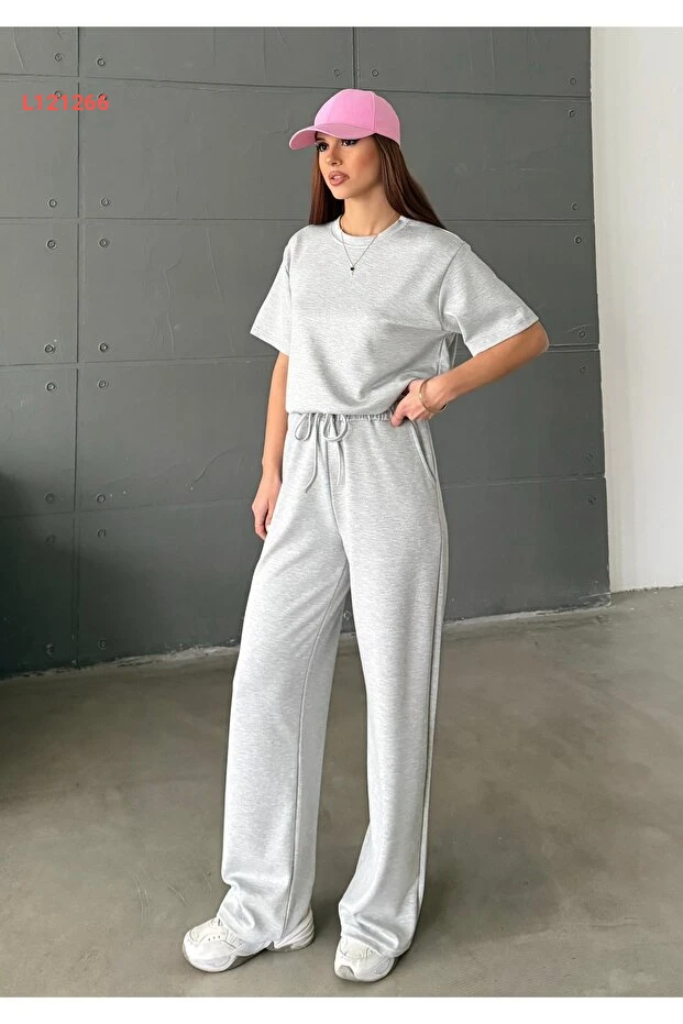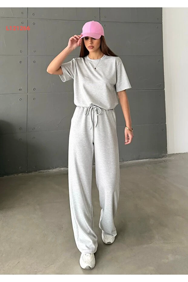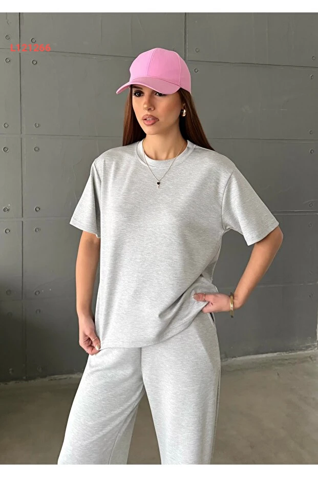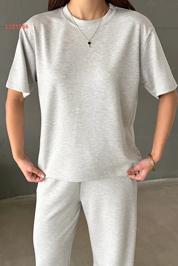 طقم رياضي نسائي رمادي مودال بأكمام قصيرة ومظهر ناعم