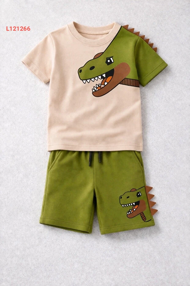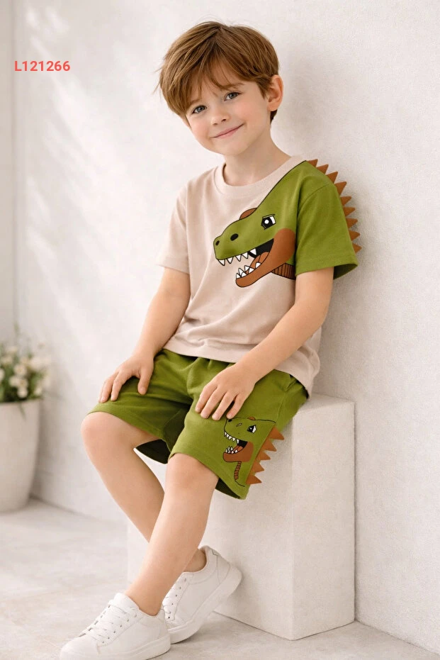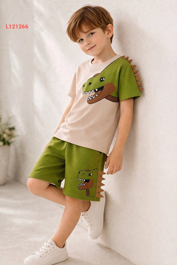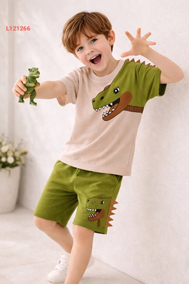 طقم أولاد بeka Kids: شورت وتيشيرت قصير الأكمام بطبعة ديناصور