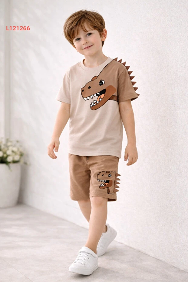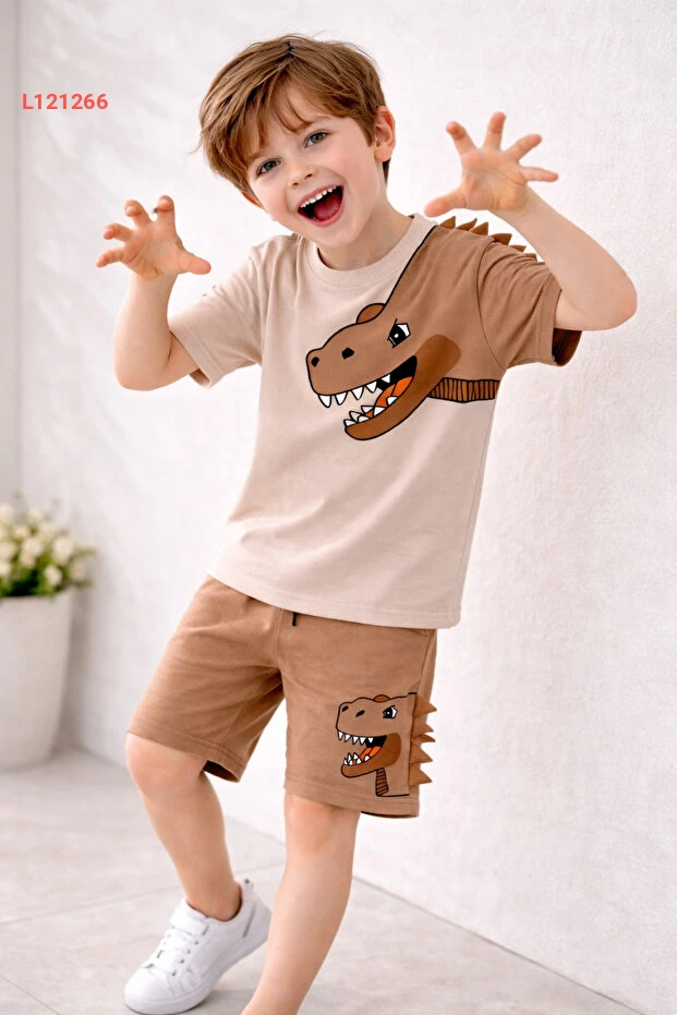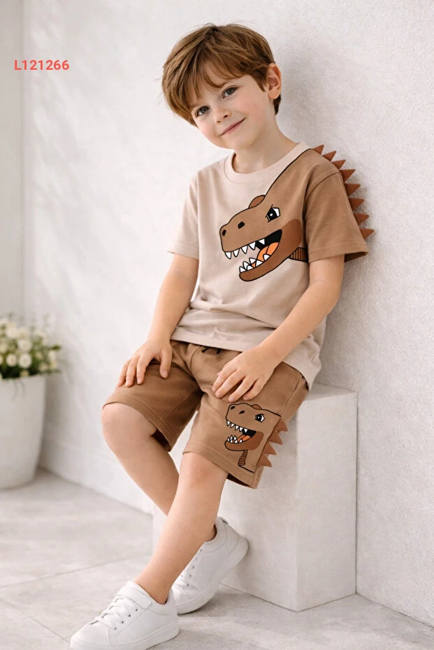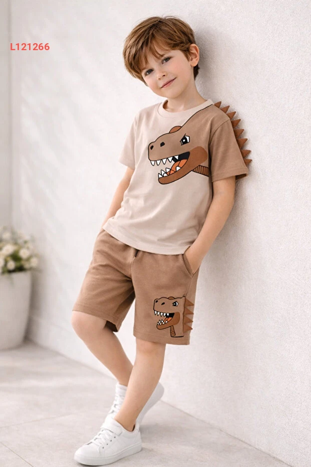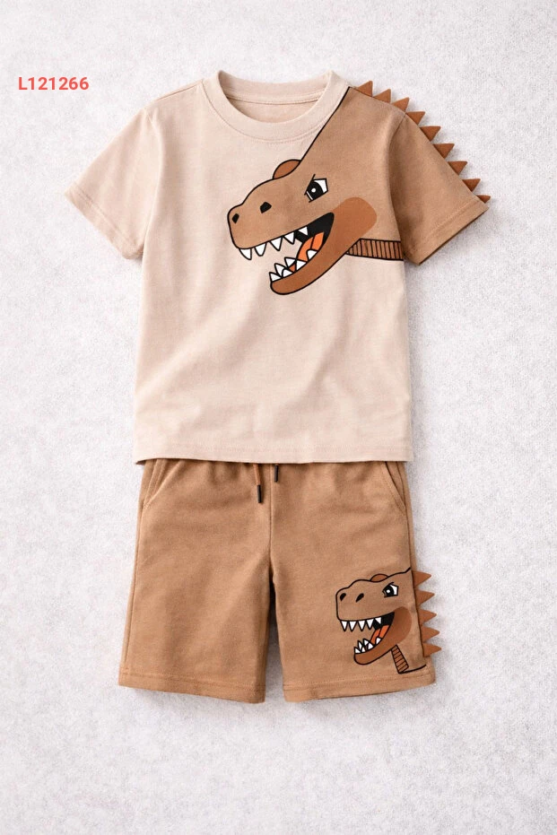طقم ملابس أطفال أولاد تيرانوصور قصير الأكمام بشورت وقميص