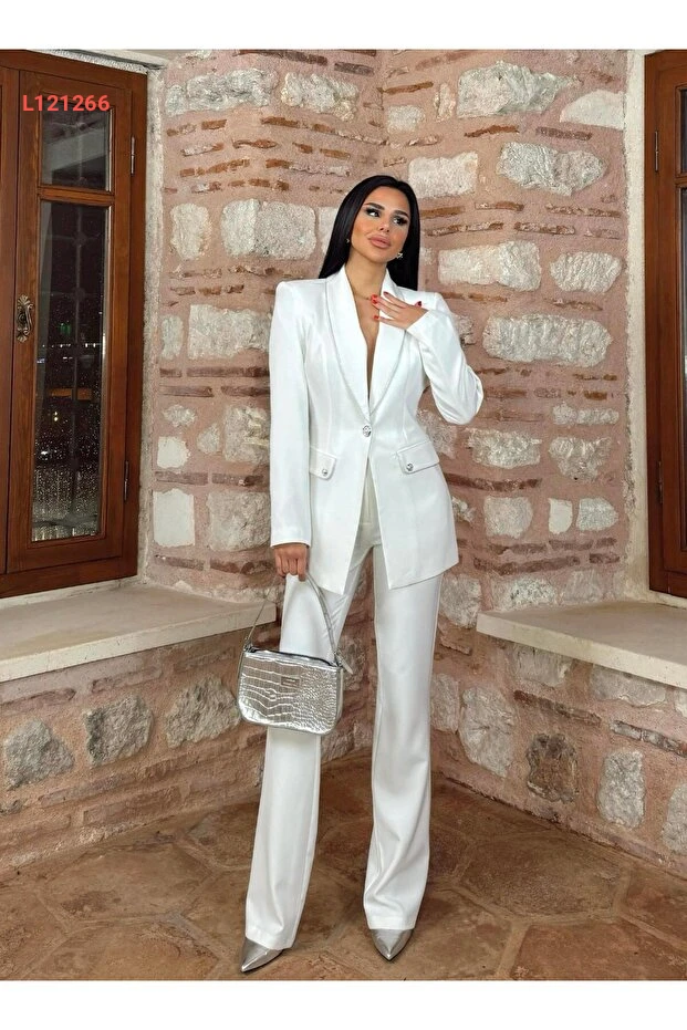 اكتشف أنوثتك بأناقة مع بدلة Bella Breeze النسائية ذات الياقة المزينة بالأحجار. تجمع هذه البدلة بين التصميم العصري والراحة الفائقة، ما يجعلها الخيار المثالي للمناسبات الرسمية والعمليات اليومية. تجعلك تفاصيلها الراقية وشكلها المتكامل ترين نفسك بأفضل صورة أينما ذهبت.