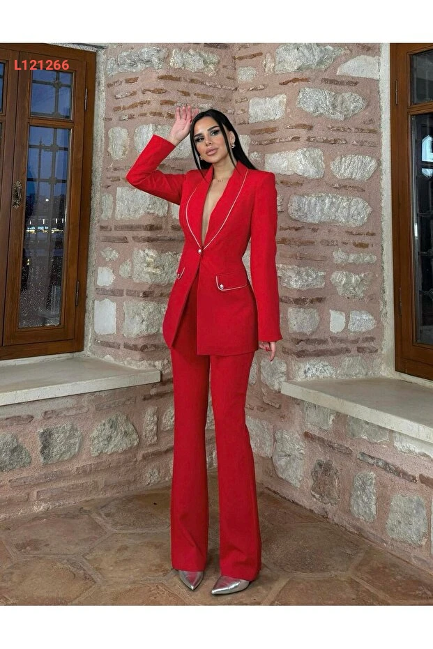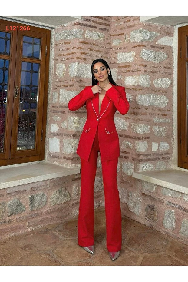 إطلالة بيلا بريز: بدلة نسائية مزينة بحواف مزخرفة بالأحجار