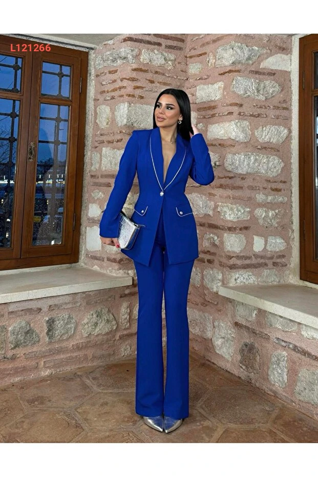 اكتشفي أناقة لا تضاهى مع بدلة بيلّا بريز النسائية المزينة بتفاصيل حجرية رائعة حول الياقة. مصممة لتمنحك إطلالة مفعمة بالثقة والجاذبية، تجمع بين الراحة والأنوثة، مما يجعلها الخيارات المثالية للمناسبات الرسمية أو العمل اليومي. ارتديها وتألقي بإطلالة تسحر الأنظار!